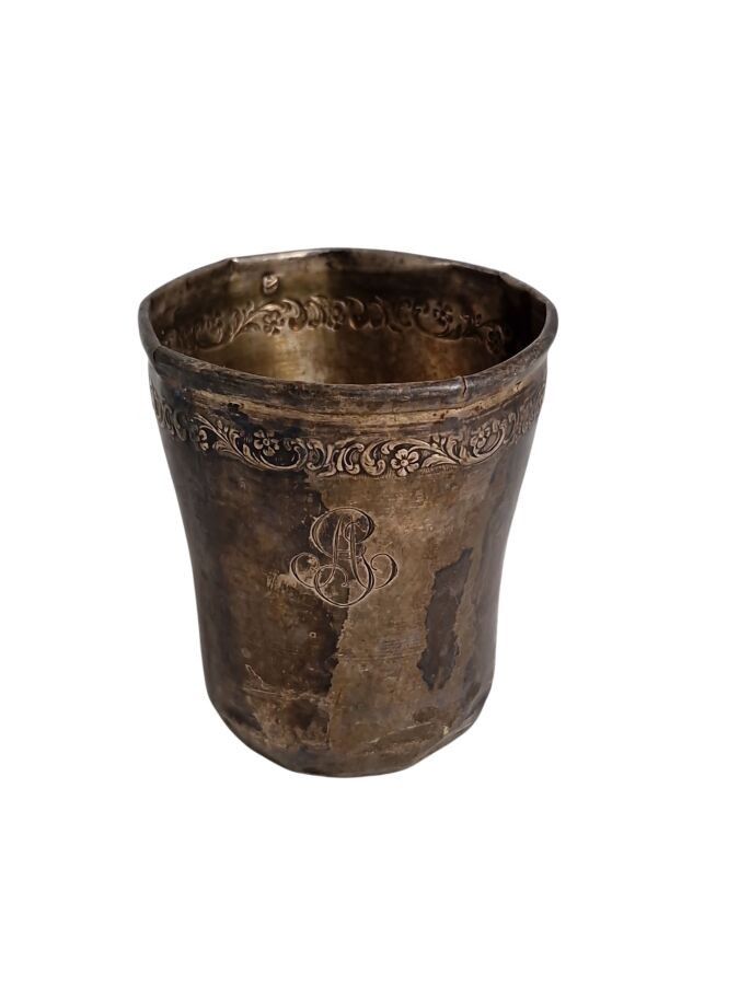 Lot en argent comprenant : crémier, timbale (bosses) Poids :…