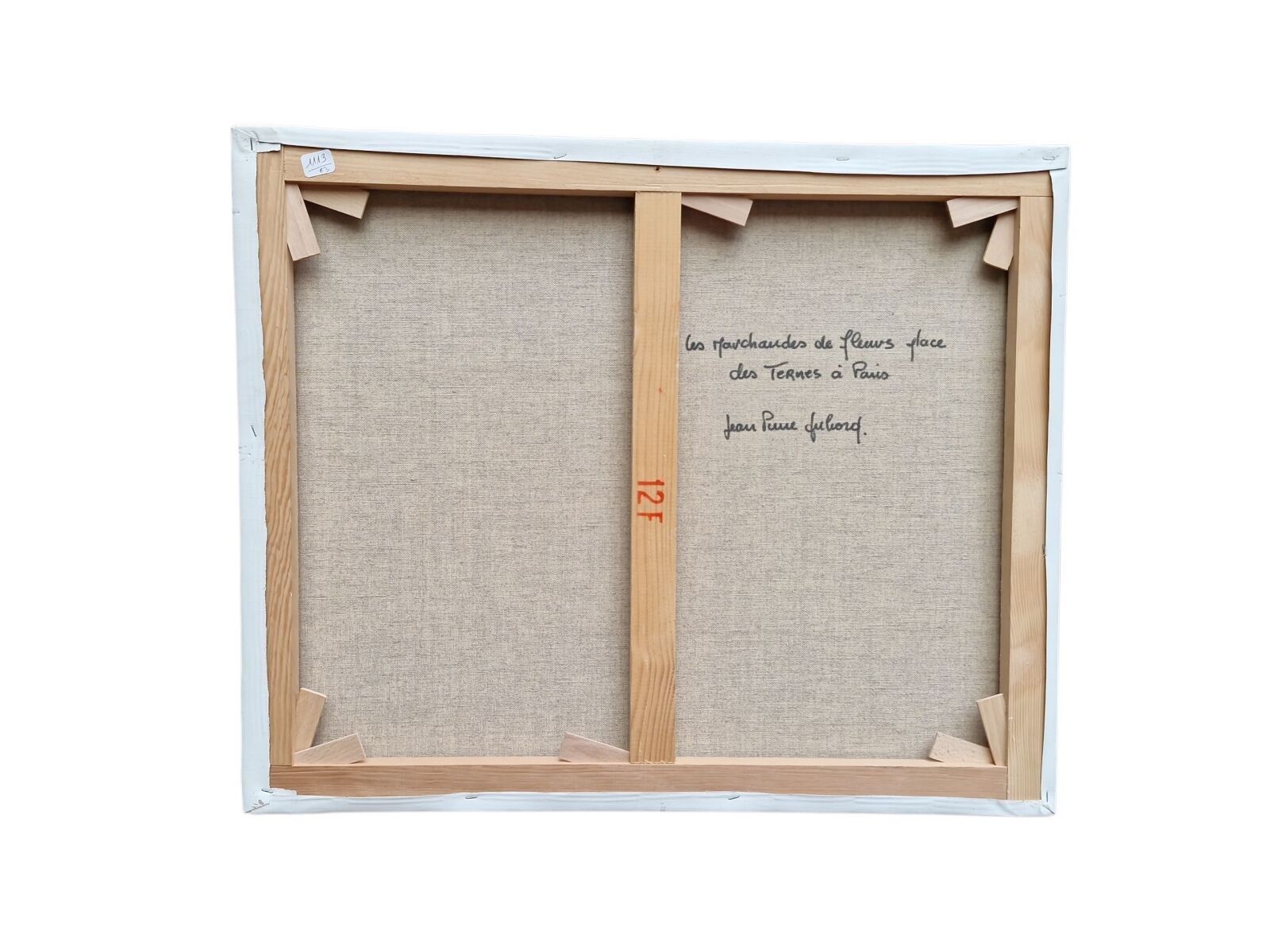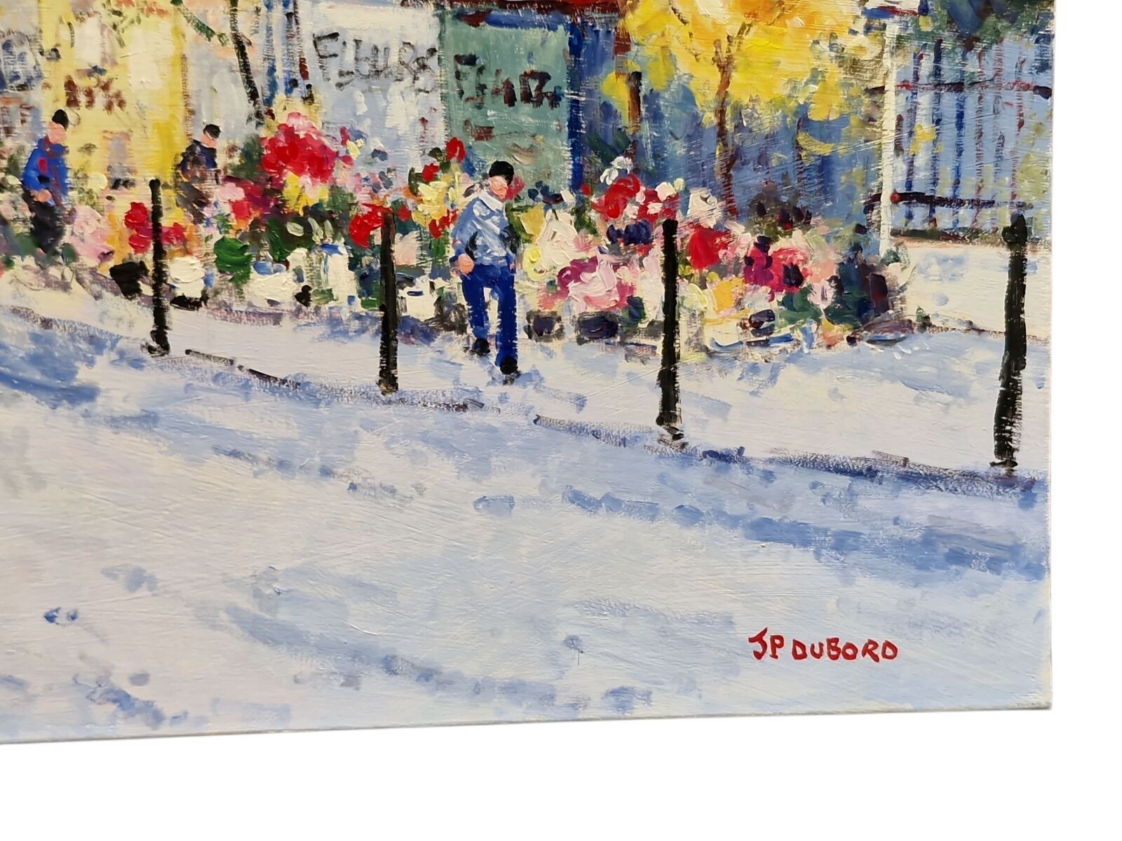 Jean Pierre Dubord "Les marchandes de fleurs place des Termes à Paris", huile sur toile, signée en bas à droite, 50 x 61 cm