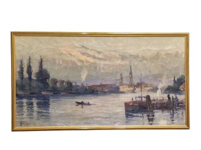 Narcisse HENOCQUE, "La Seine à Rouen", huile sur toile signé…
