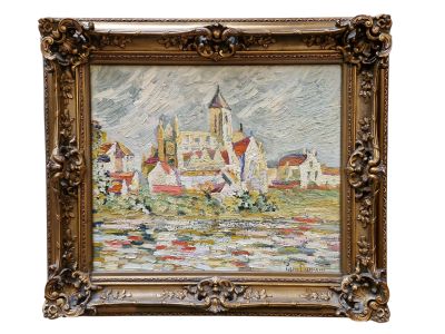 Pierre Jean DUMONT (1884-1936), "L'église de Vetheuil", huil…