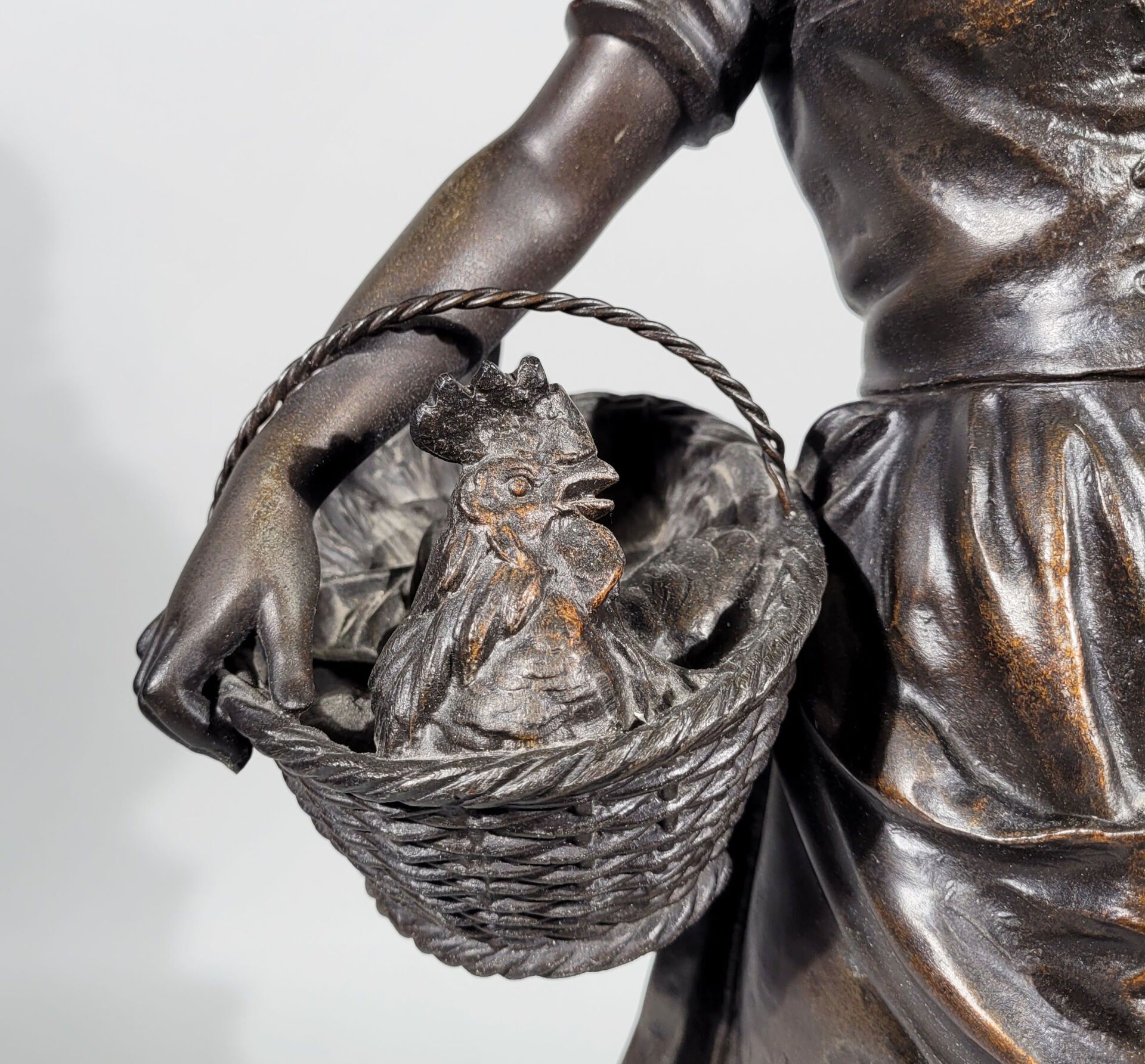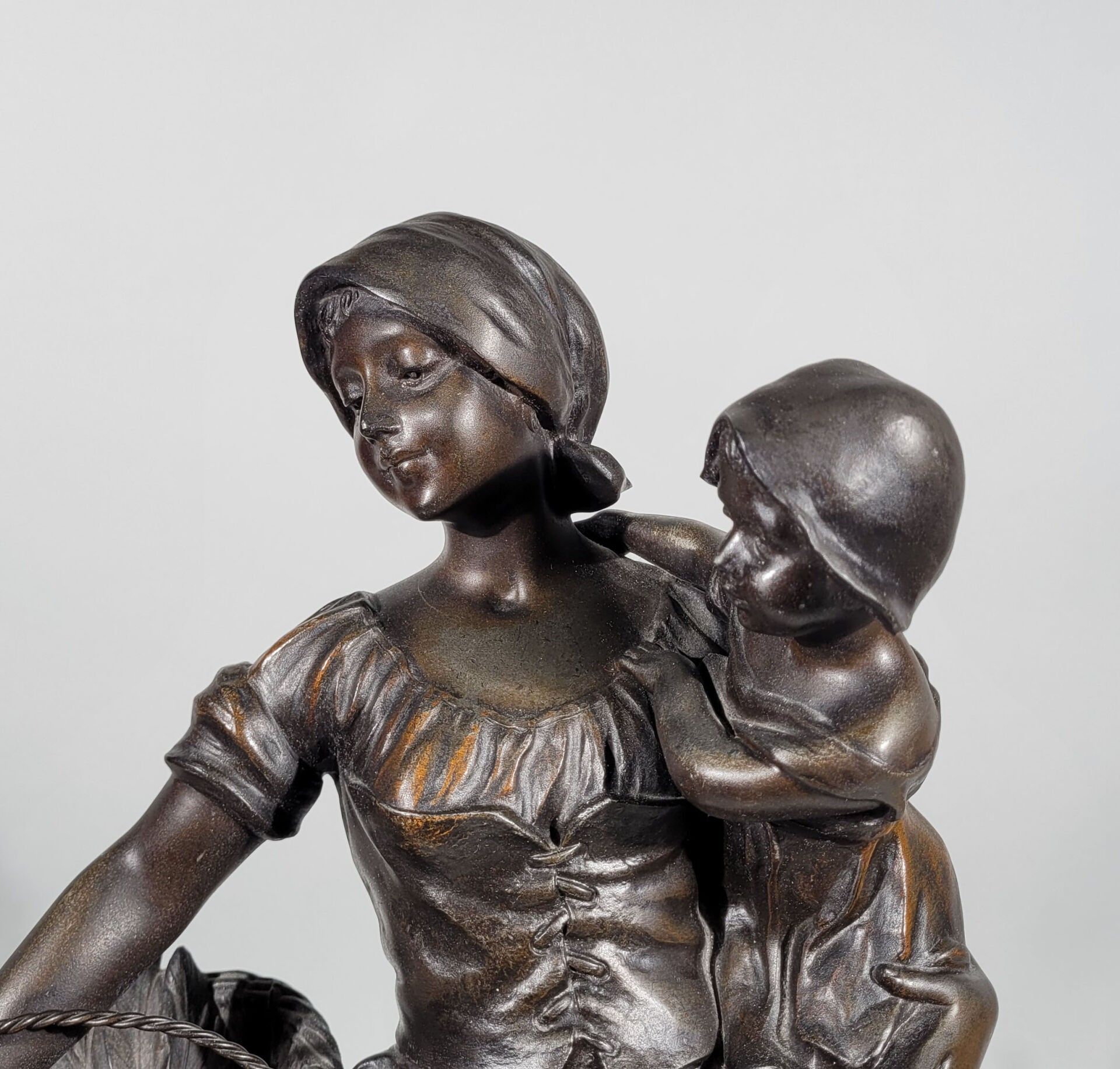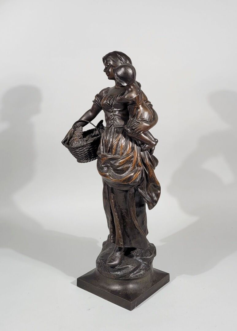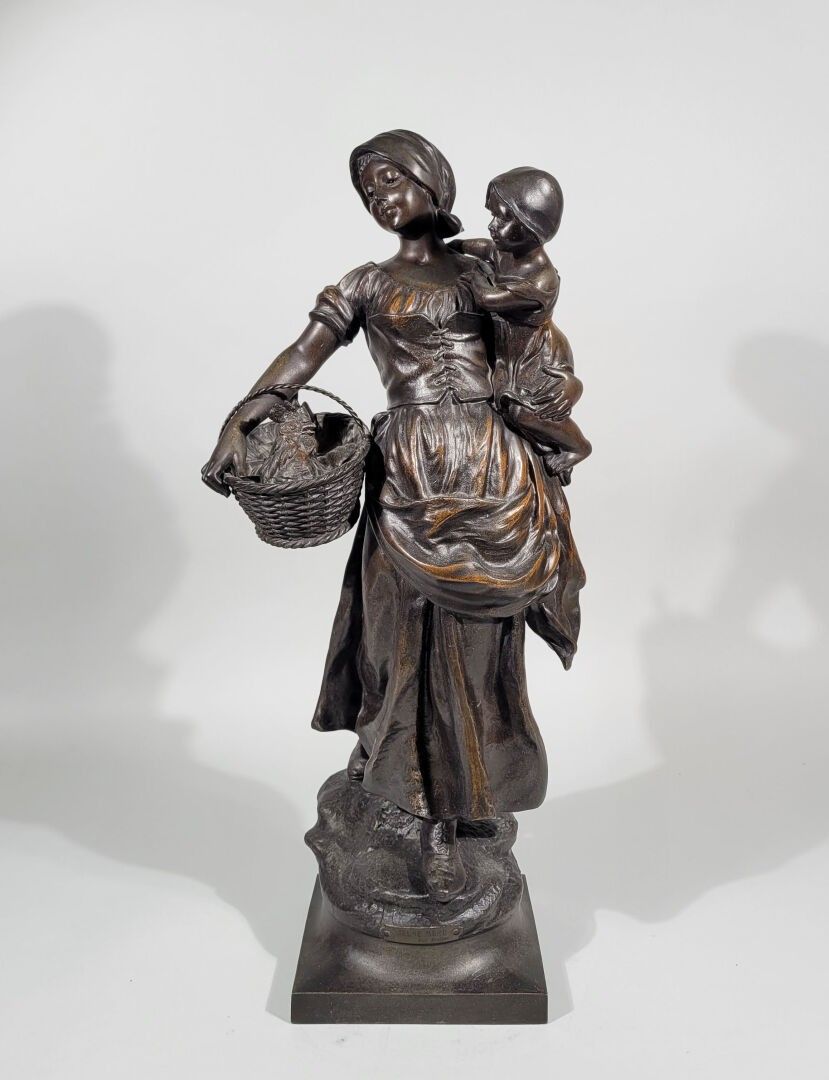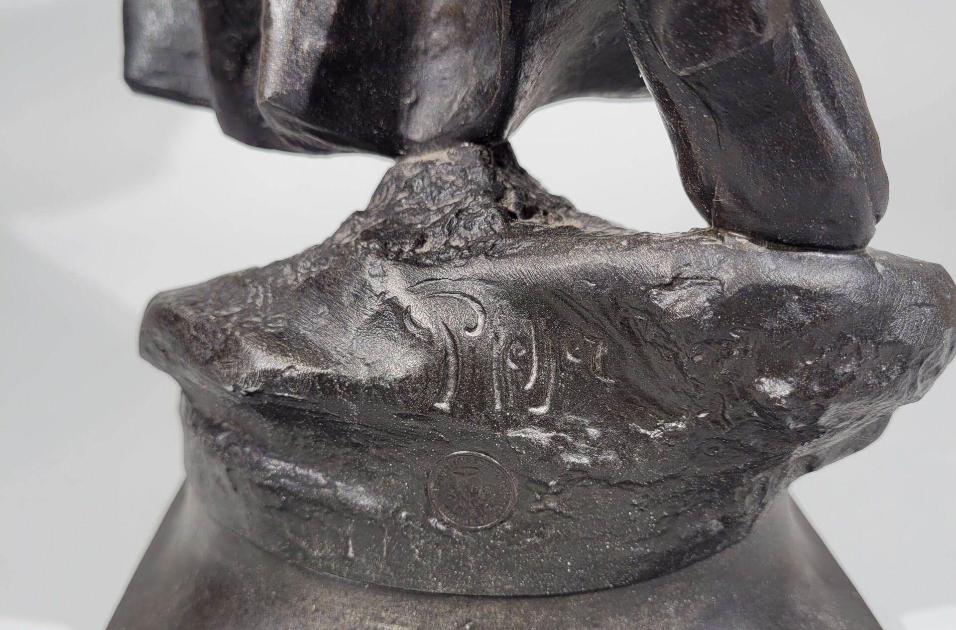 Sculpture en régule à patine brune et bronze, signée à l'arrière, titrée dans le cartouche à l'avant.