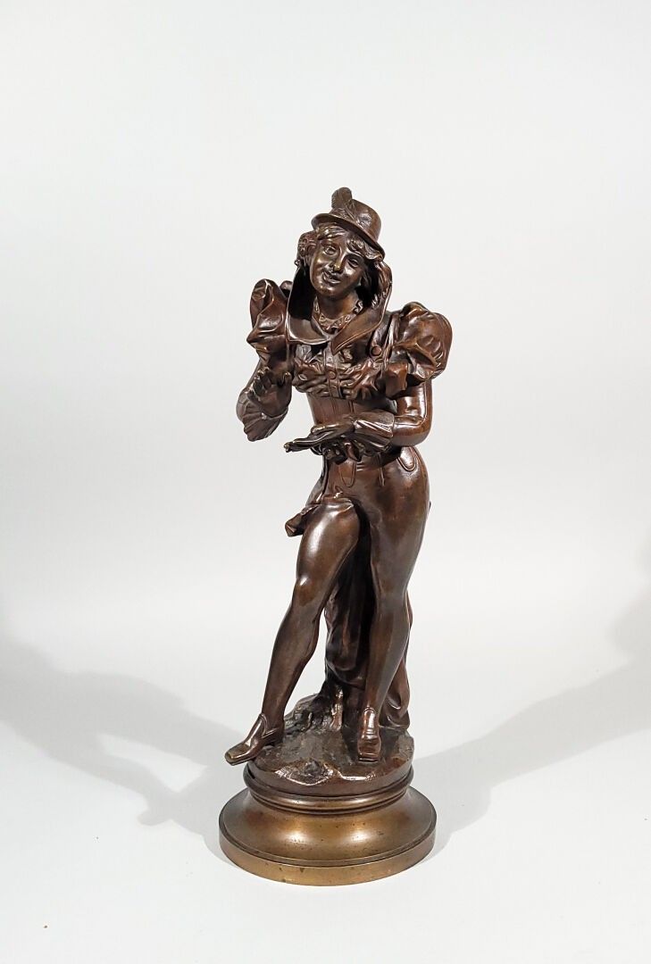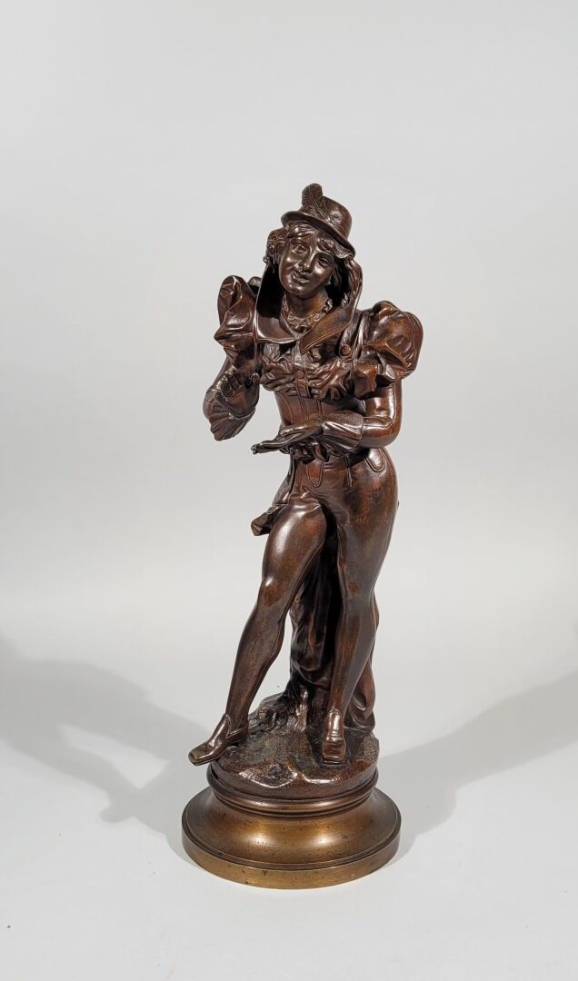 Sculpture en bronze à patine médaille, signée sur la terrasse. Monté sur un socle circulaire.