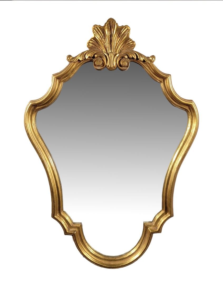 MIROIR de style vénitien à encadrement en bois mouluré, sculpté et redoré orné au fronton d'une coquille.