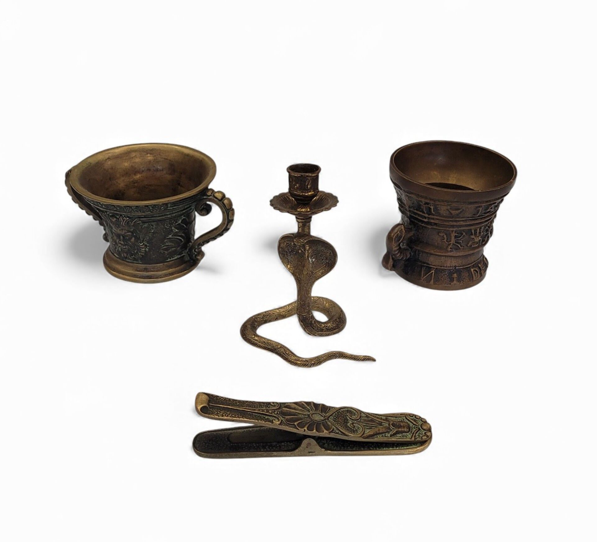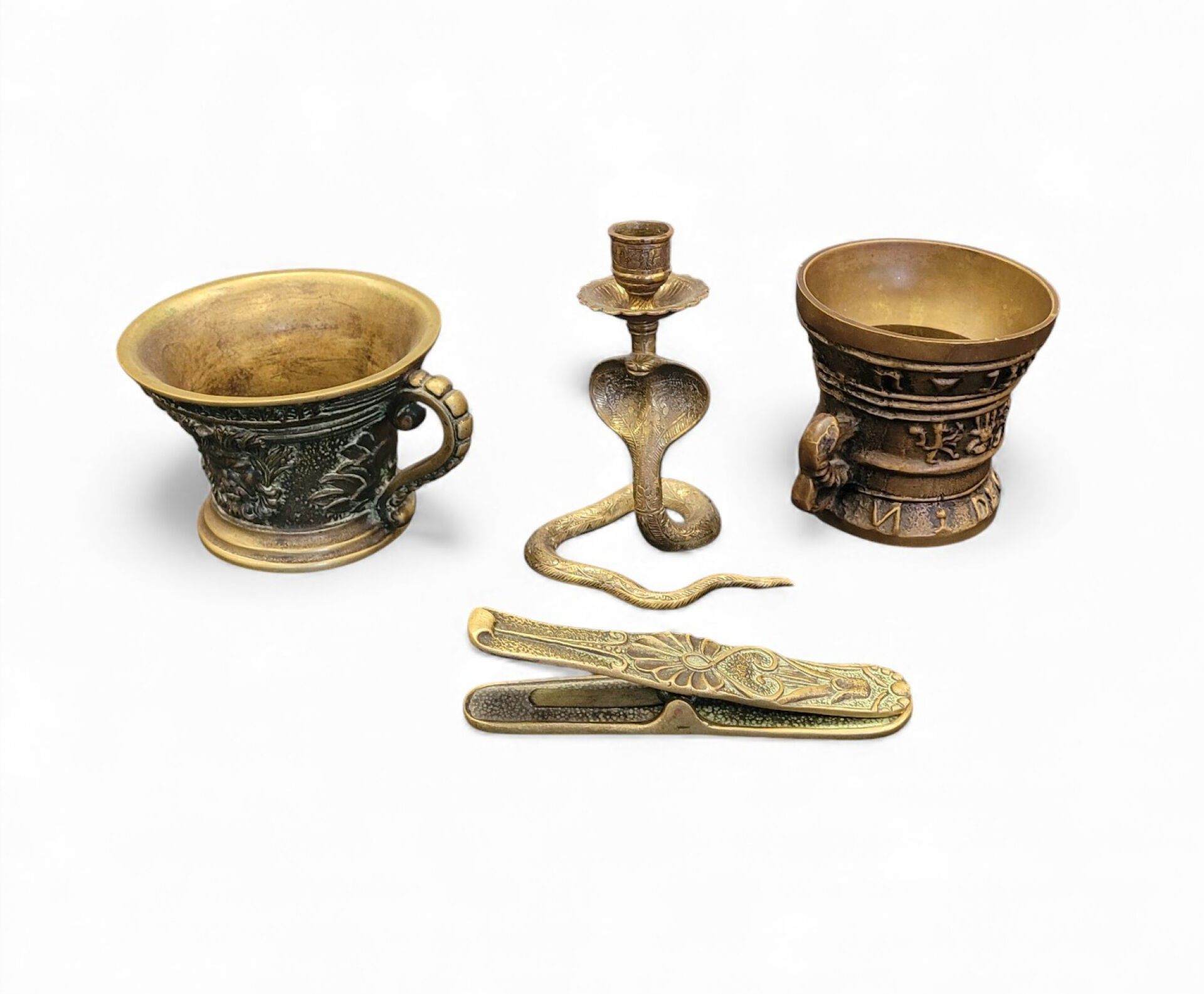 - Bougeoir en bronze affectant la forme d'un cobra.