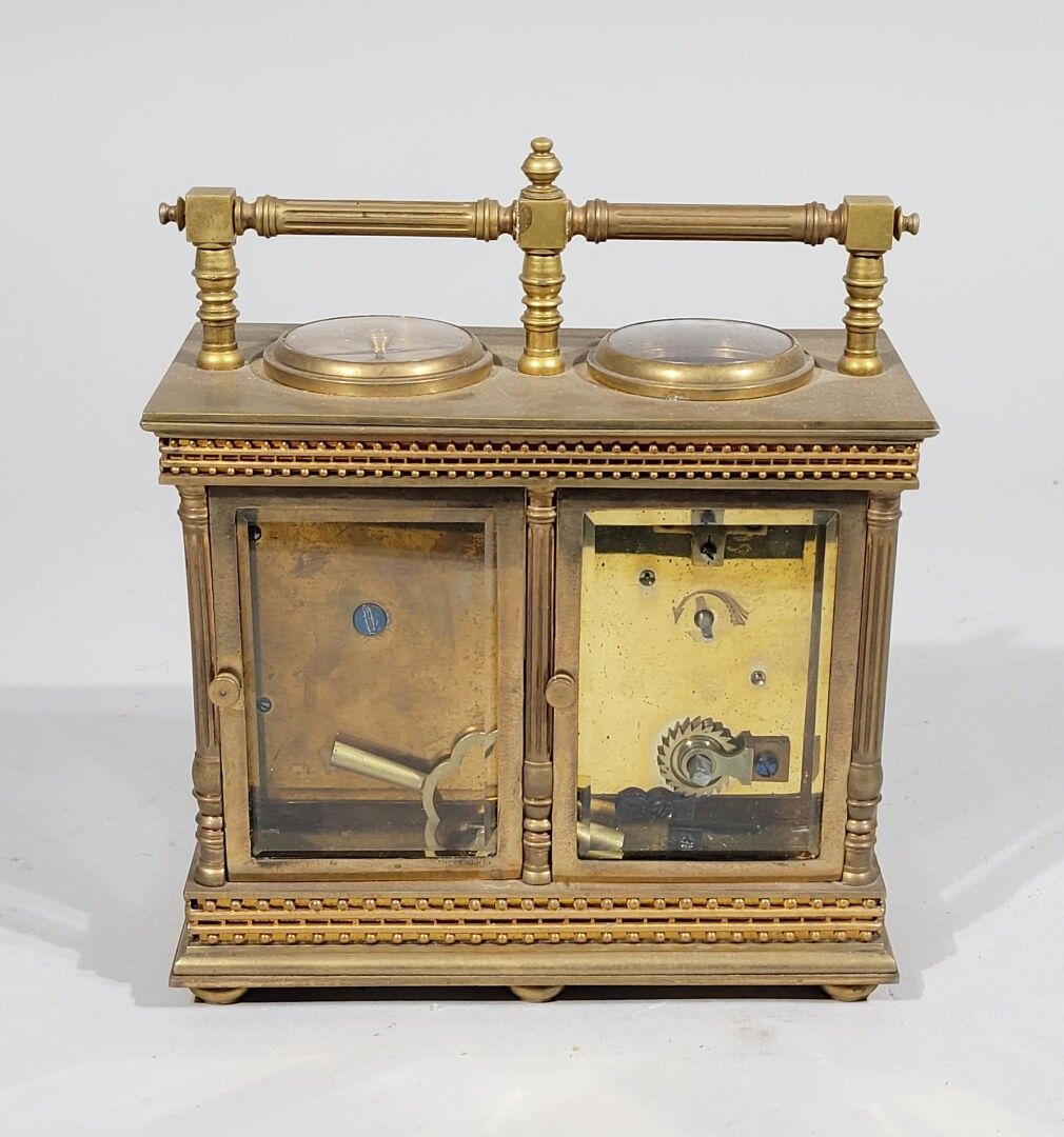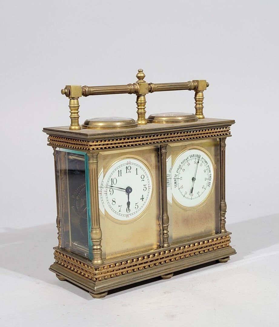 PENDULE d'officier en laiton doré avec baromètre et boussole…