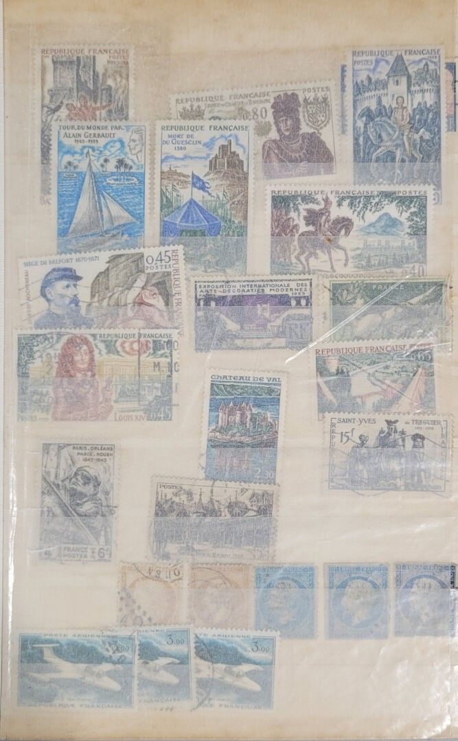 LOT DE TIMBRES principalement français contenu dans 4 albums. Timbres en vrac et enveloppes Premier Jour.