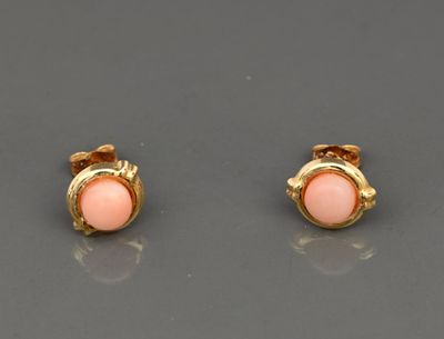 Paire de puces d'oreilles en or jaune 18k et cabochons de co…