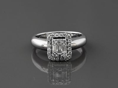 Bague en or gris 18k sertie à effet de diamants brillantés e…