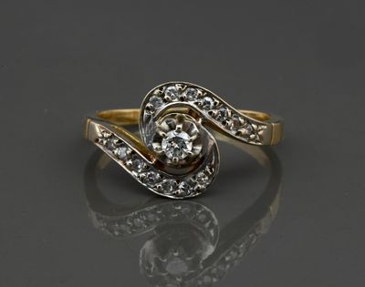 Bague en or de trois tons ornée de petits diamants (manque u…