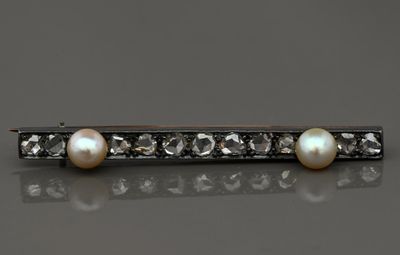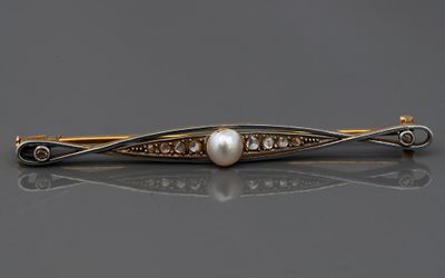 Broche barrette en or jaune 18k et argent ornée de deux perl…