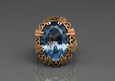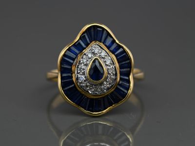 Bague juponnée en or jaune 18K sertie d'un saphir poire à do…