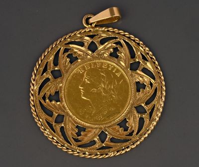 Médaillon en or jaune 18k composé d'une pièce de 20F suisse …