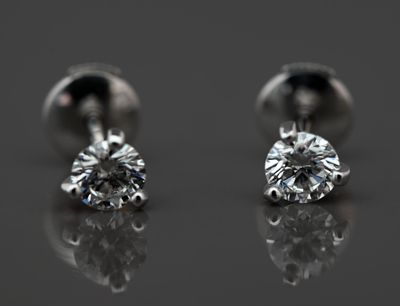 Paire de puces d’oreilles en or blanc 18k serties à 3 griffe…