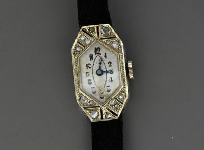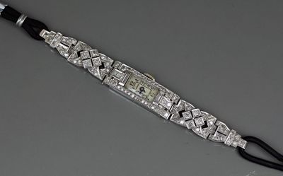 Montre de dame Art-Déco, en platine serti de diamants 8/8 et…