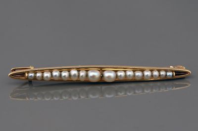 Broche barrette en or jaune 18k ornée d'une perles en chute.