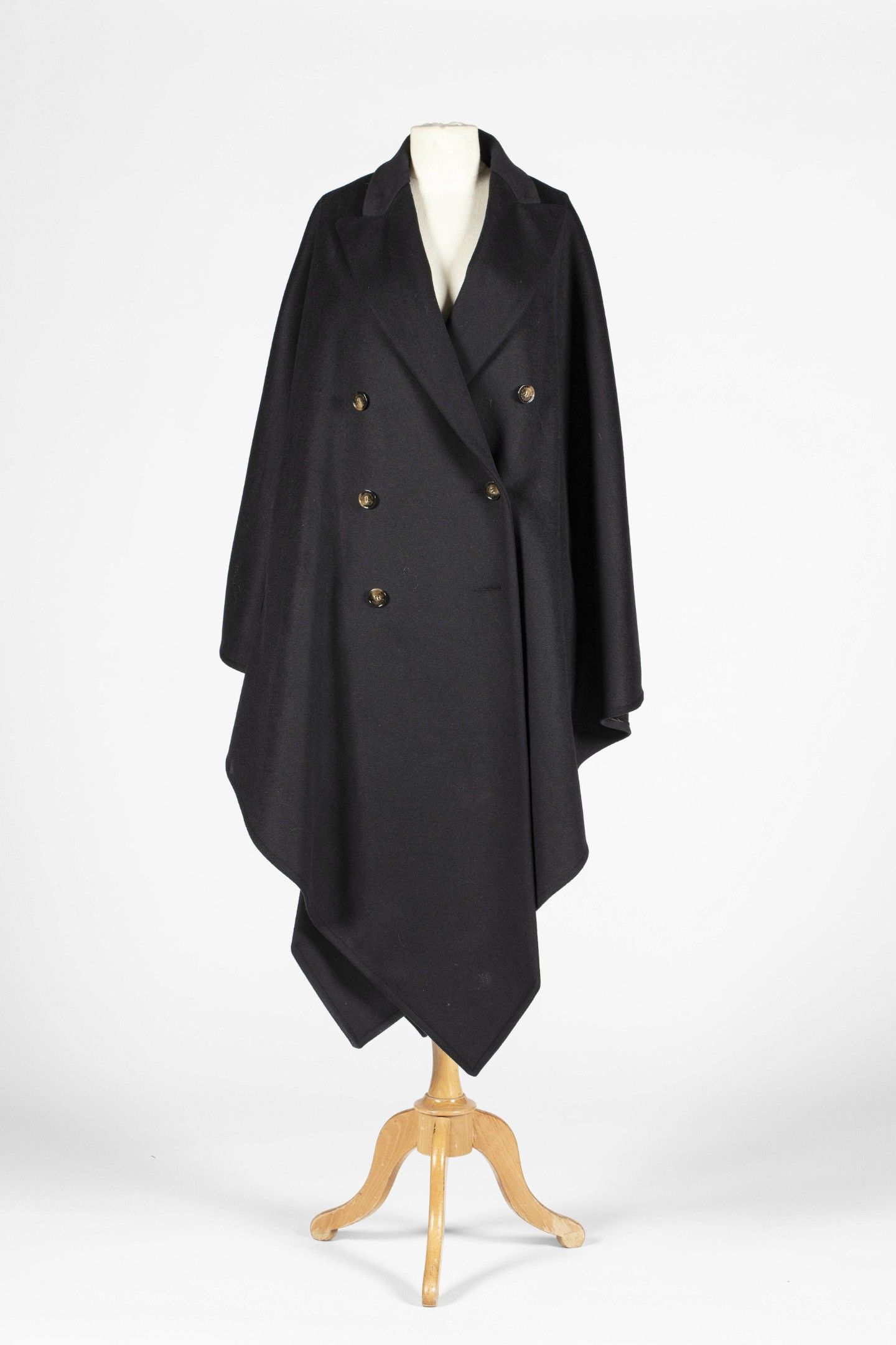Alexandre VAUTHIER - PRET-A-PORTER : Cape en drap de laine noir, sans manches, col cranté, boutonnage croisé sur le devant par six boutons. Taille S/ M - Bon état.