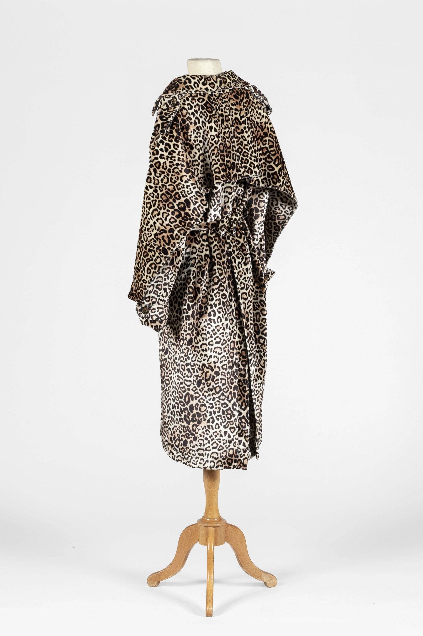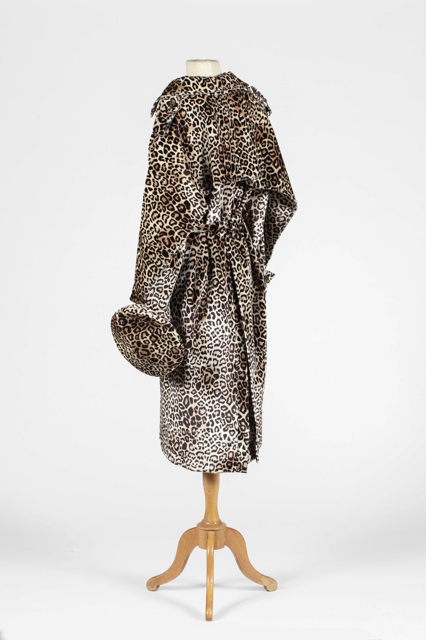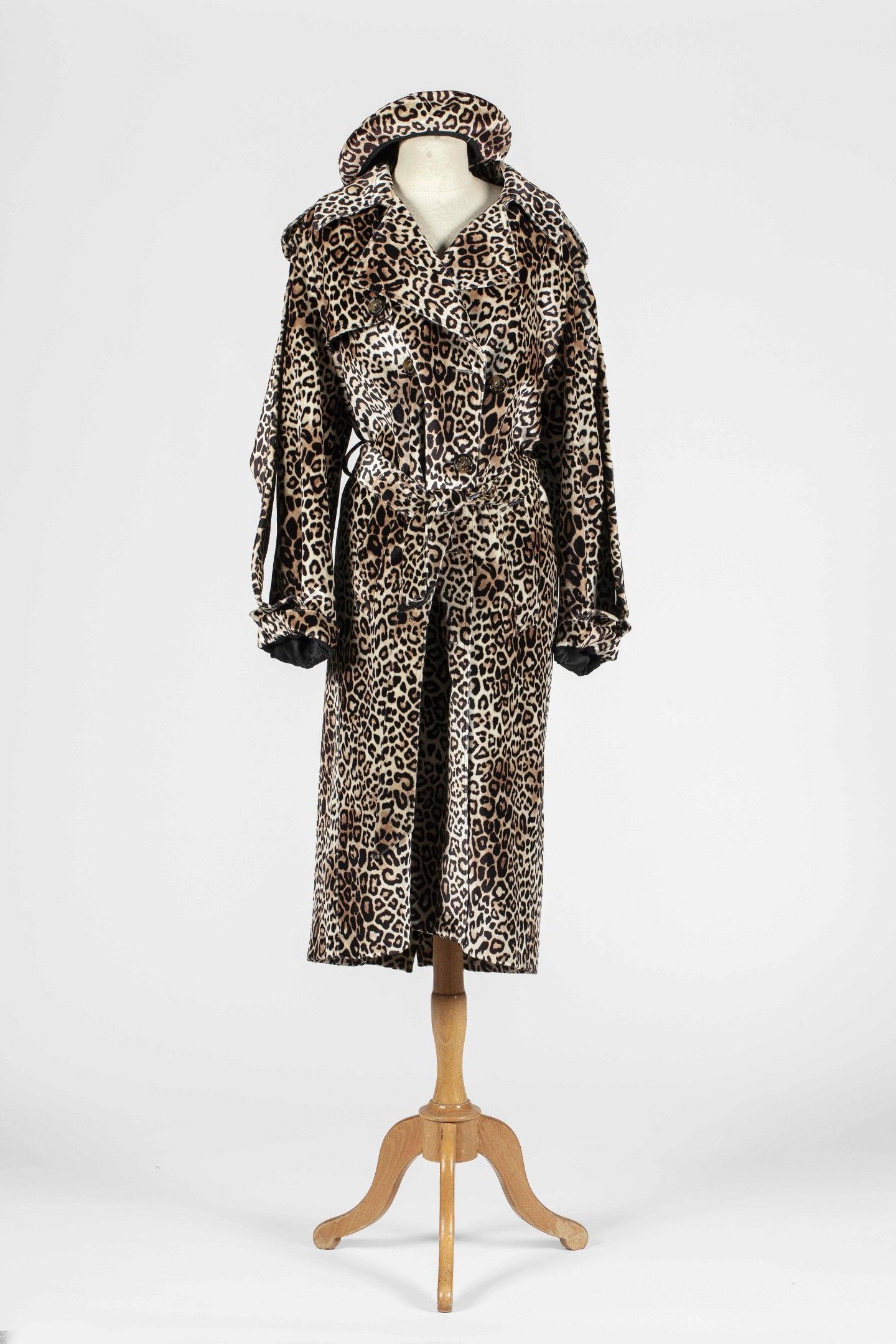 Alexandre VAUTHIER - PRET-A-PORTER : Trench en velours imprimé léopard, manches longues, col cranté, fermeture par boutonnage croisé sur le devant, ceinture amovible, deux poches plaquées. Taille S - Bon état. On y joint son béret assorti. Taille unique Bon état.