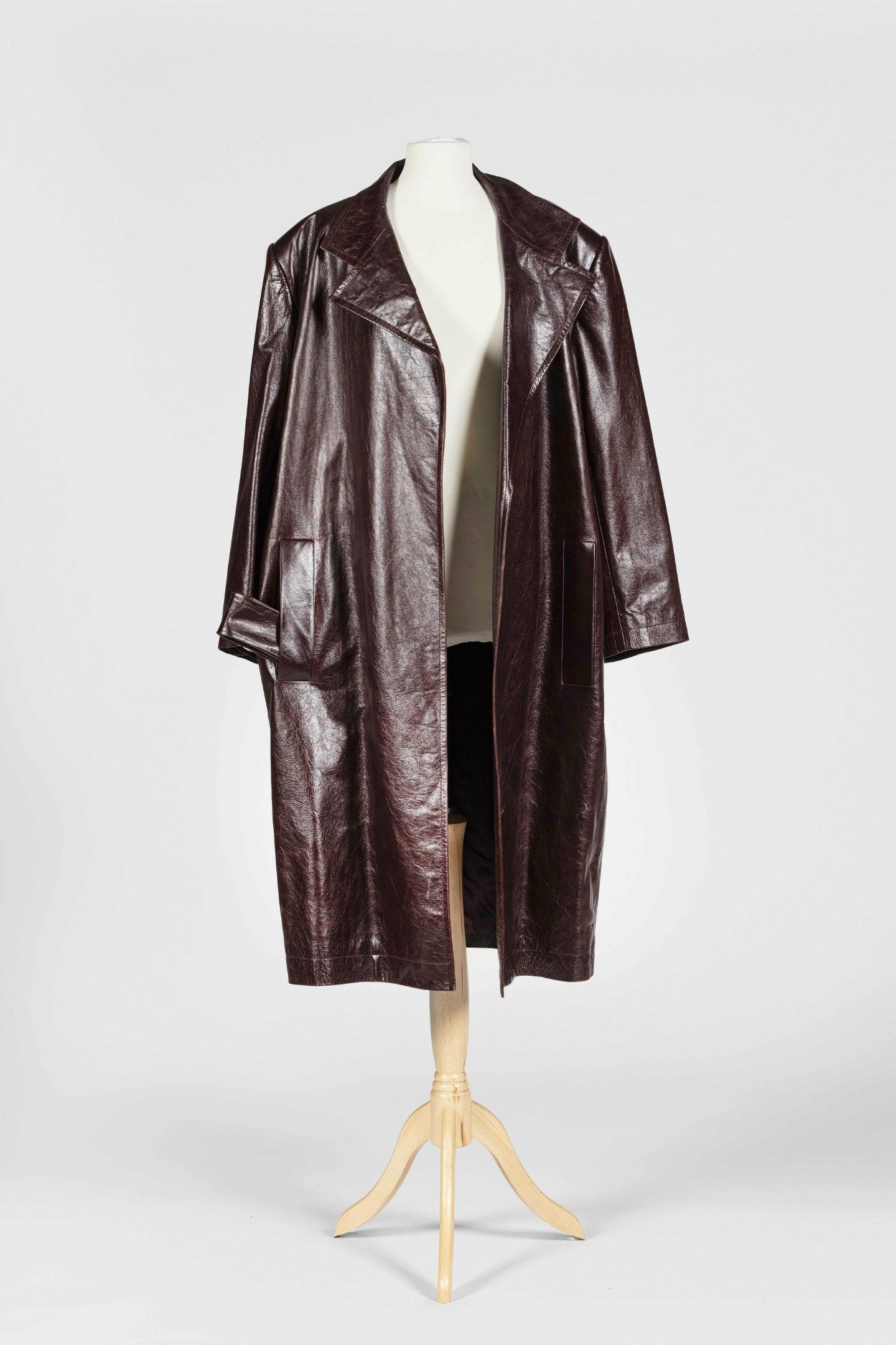 Manteau en éco cuir glacé de couleur Dark tabaco, manches lo…