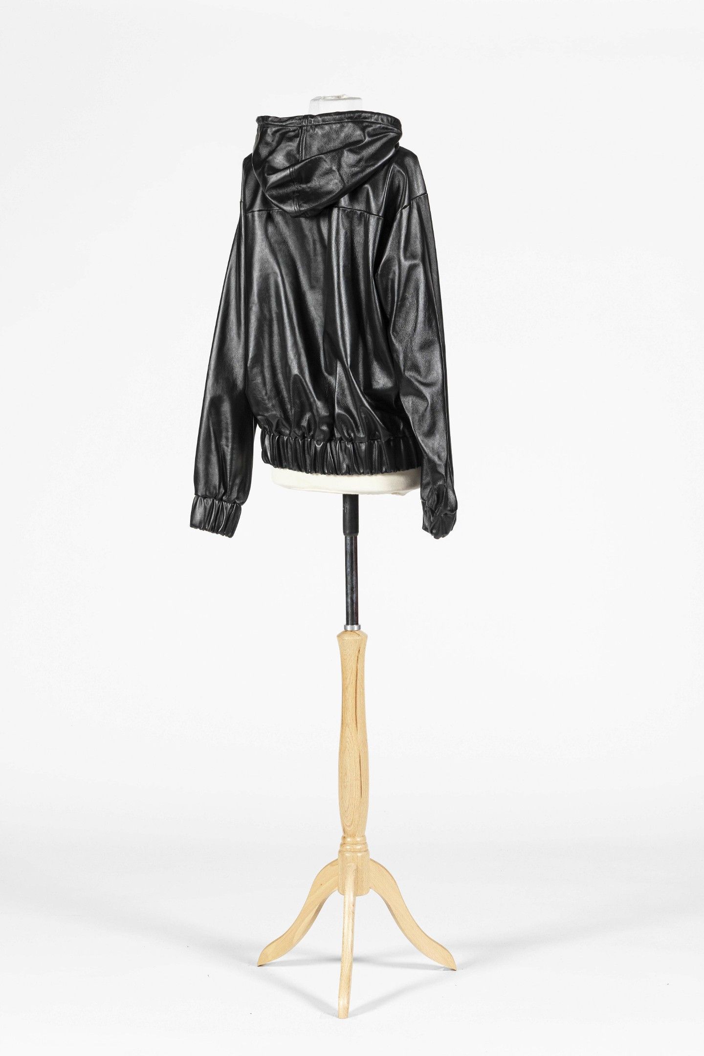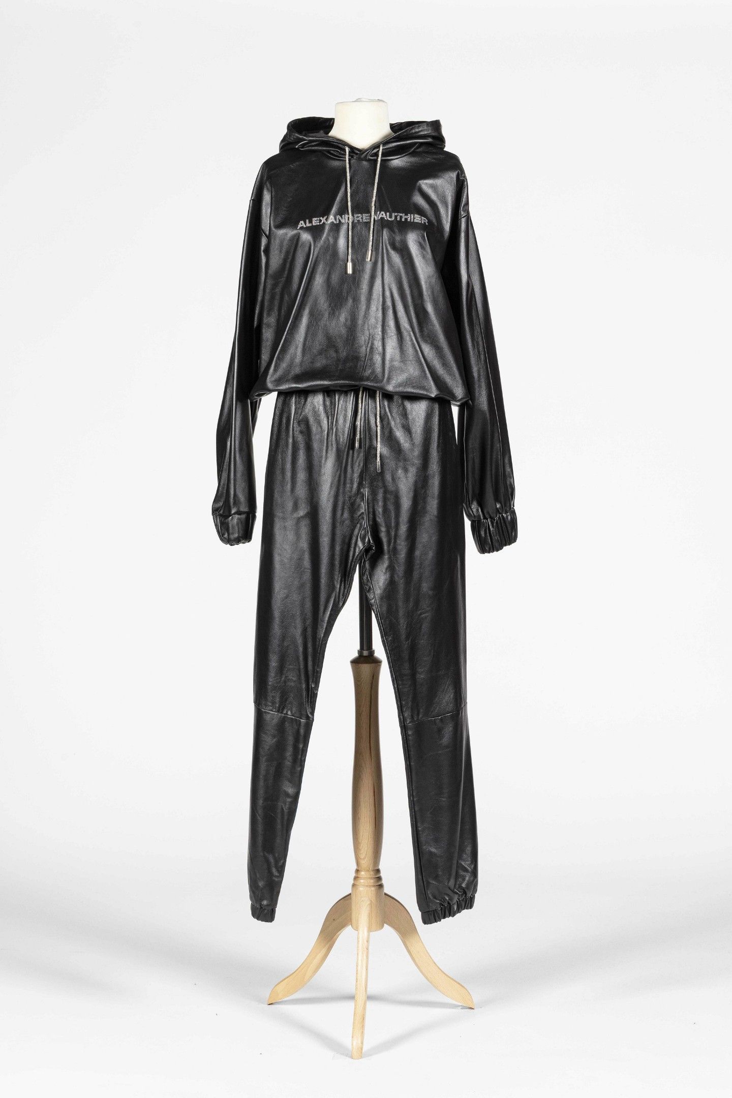 Un ensemble de jogging en cuir lisse noir comprenant :