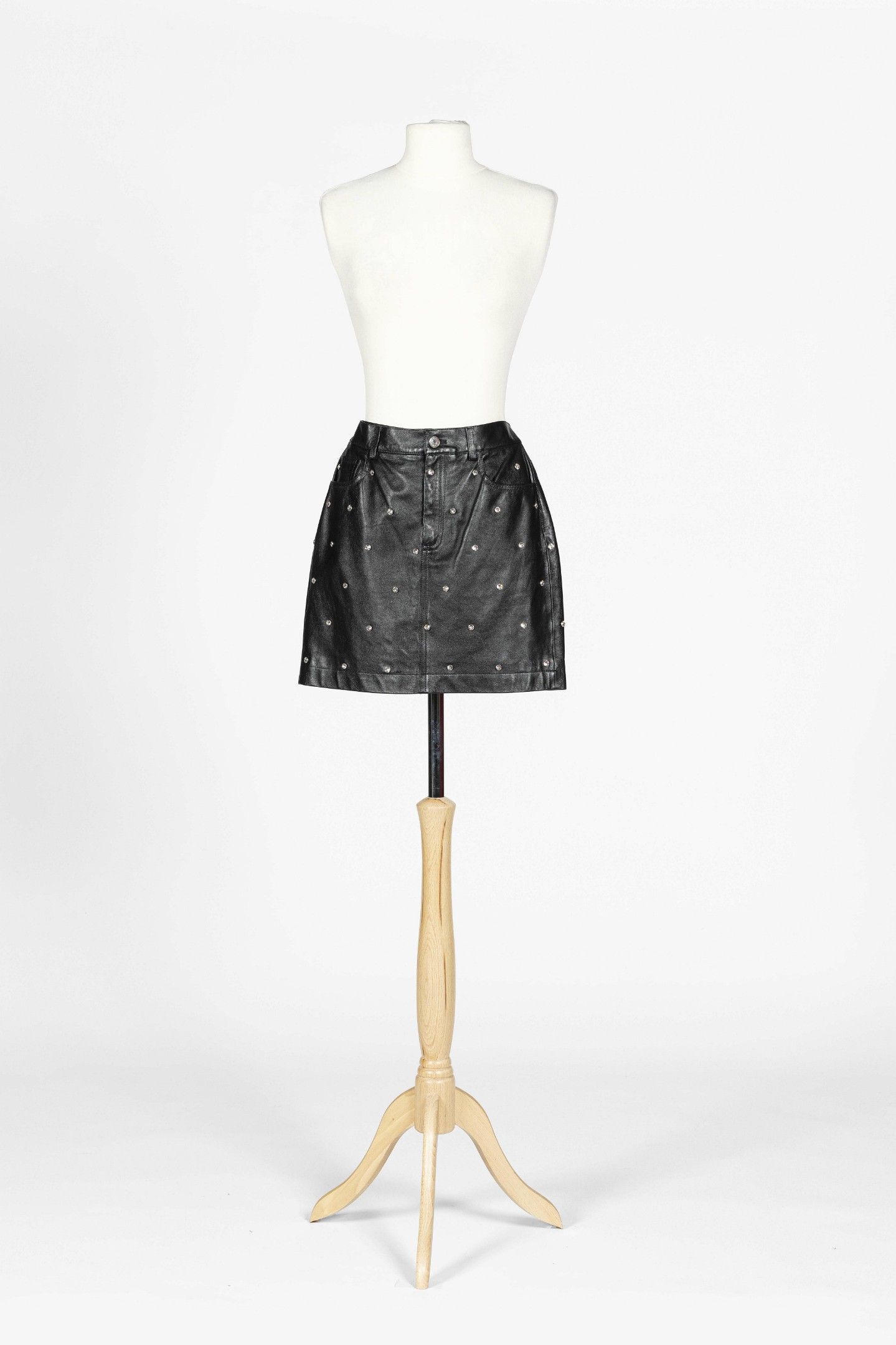 Une minijupe, deux poches plaquées, fermeture sur le devant par un zip et une pression. Taille XS / S - Bon état.