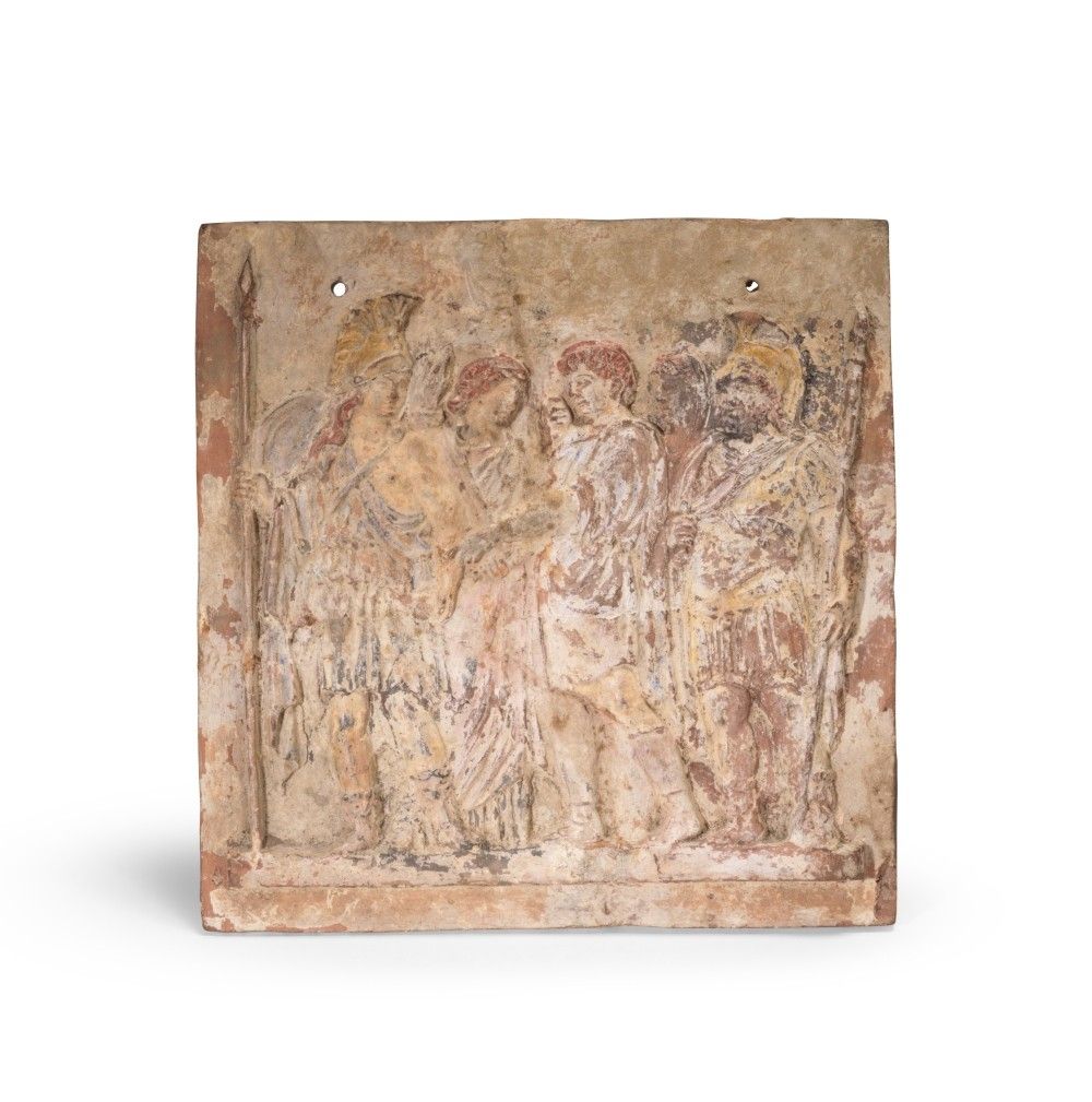 Premium 87. PLAQUE ROMAINE EN TERRE CUITE REPRÉSENTANT UN DÉPART