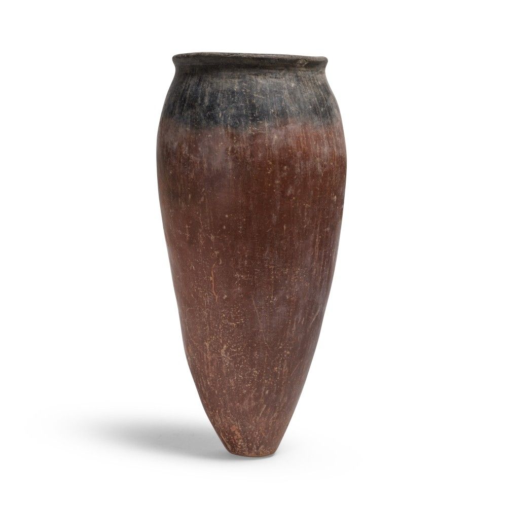 96. 96W GRANDE JARRE ÉGYPTIENNE EN POTERIE À COUVERCLE NOIR