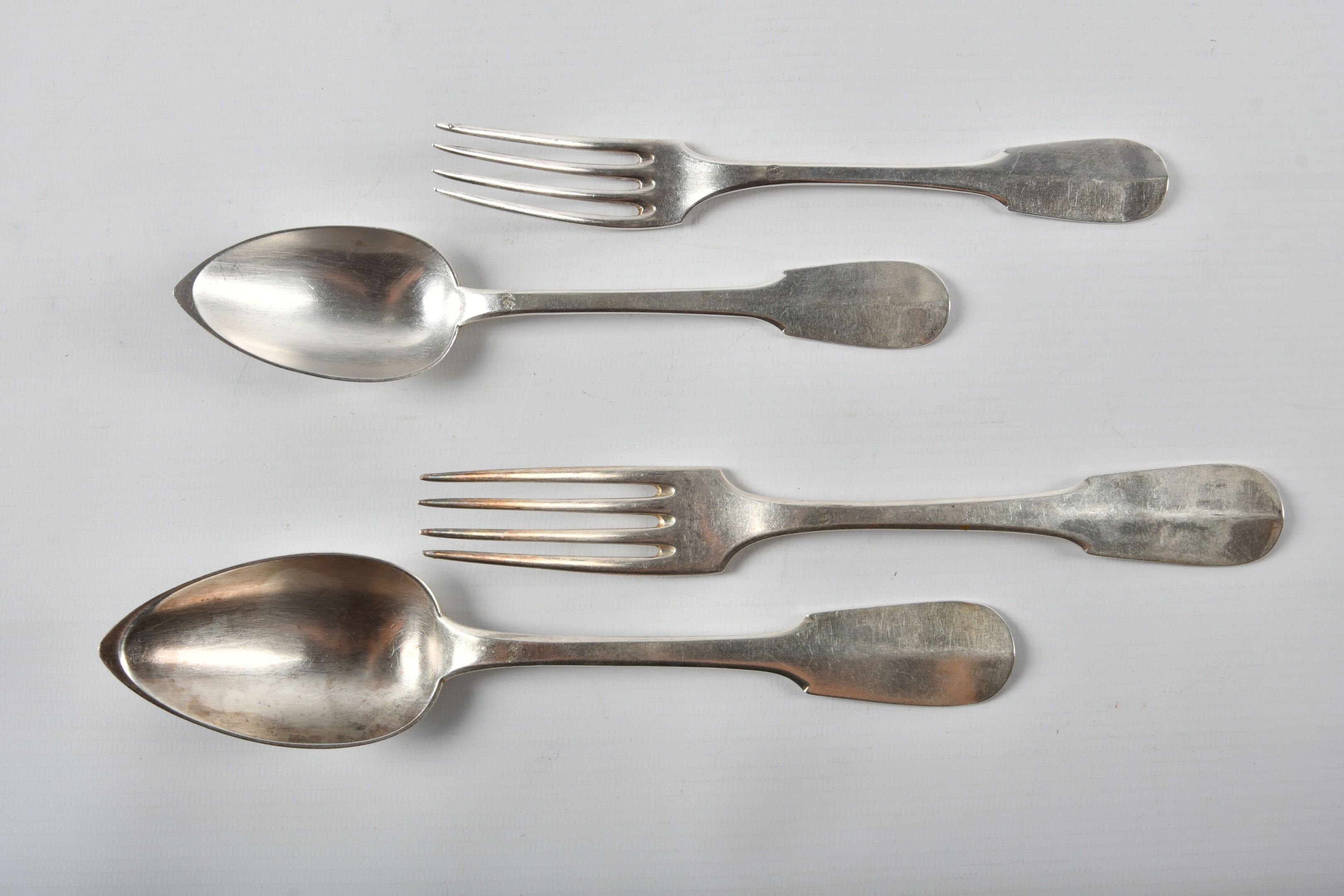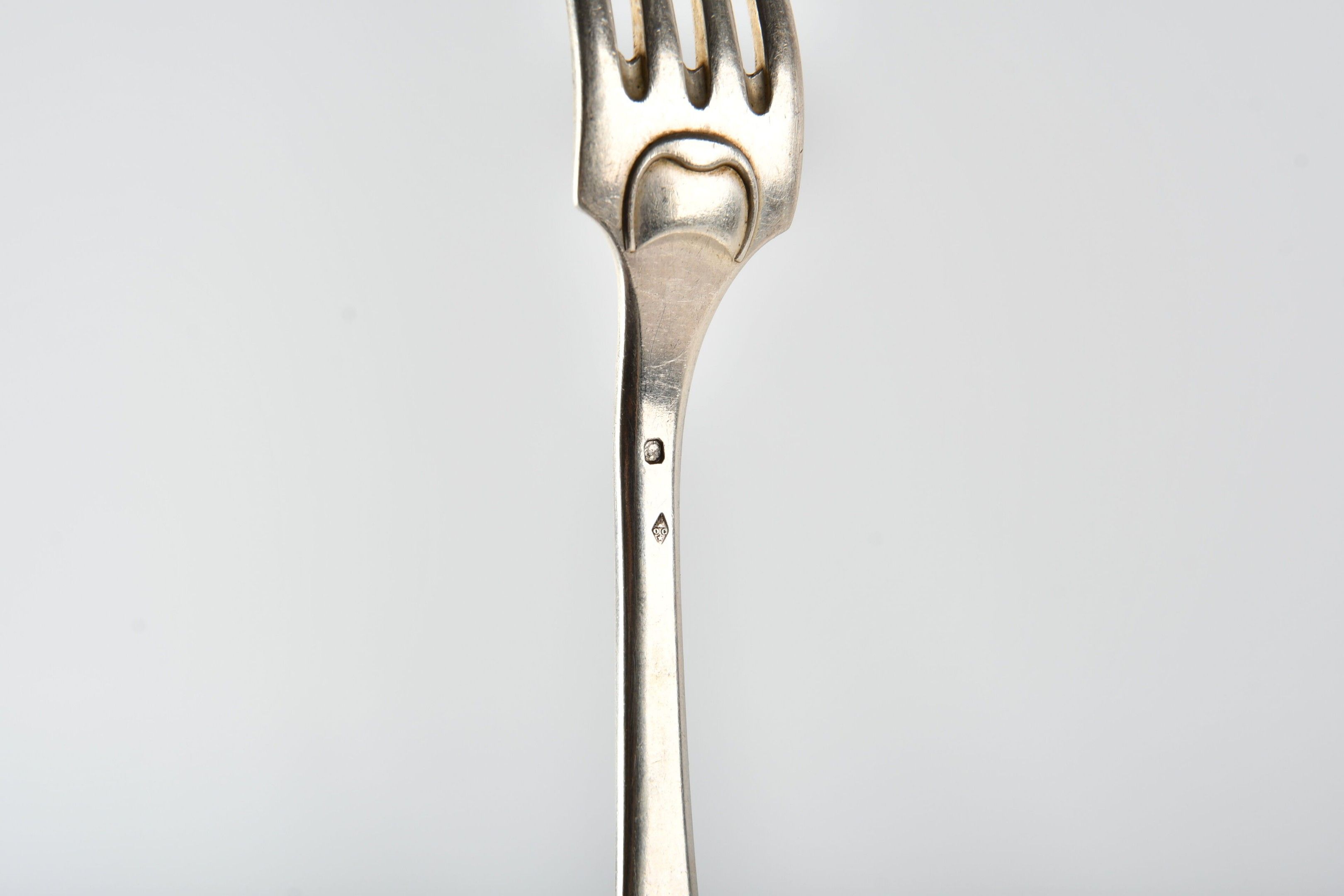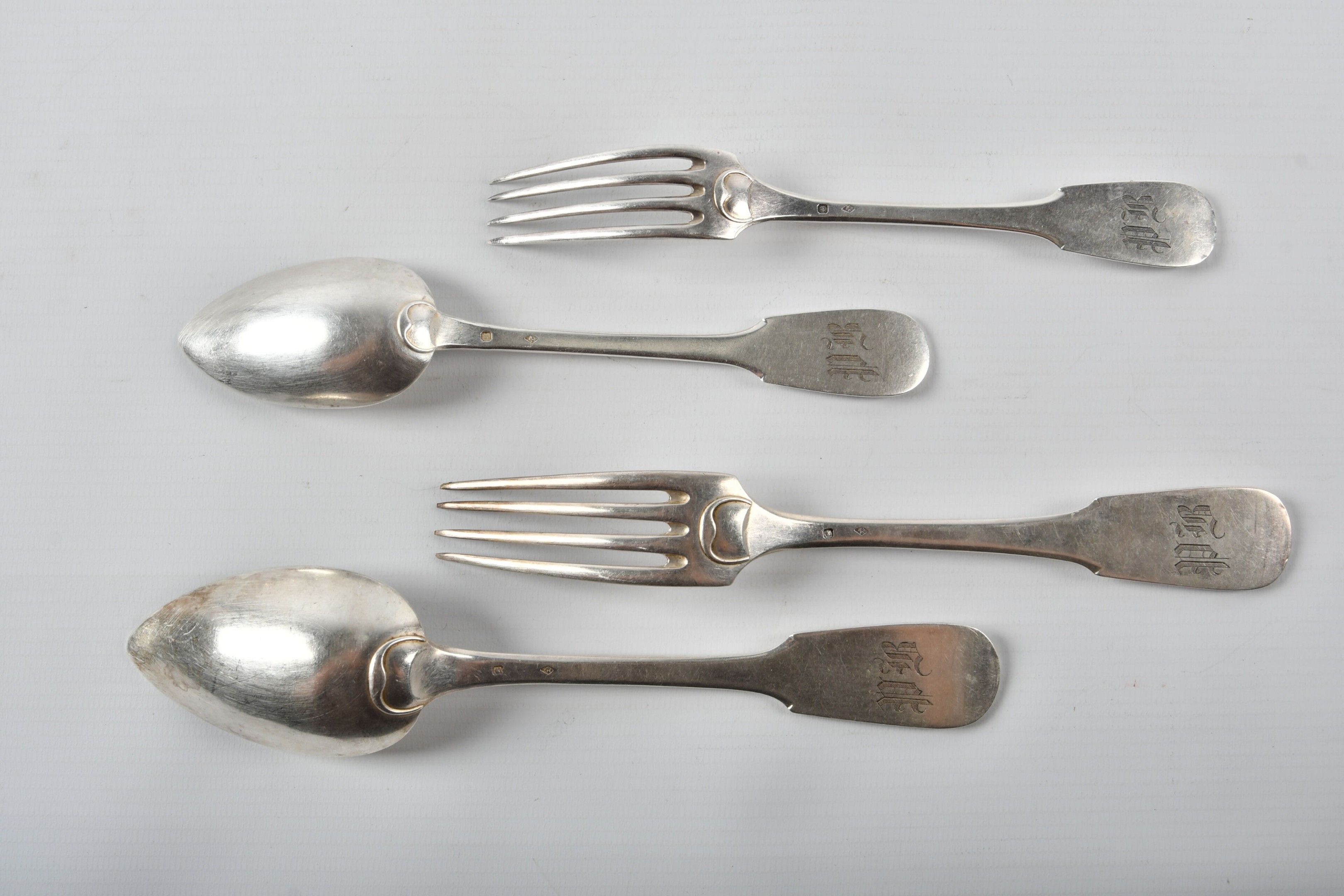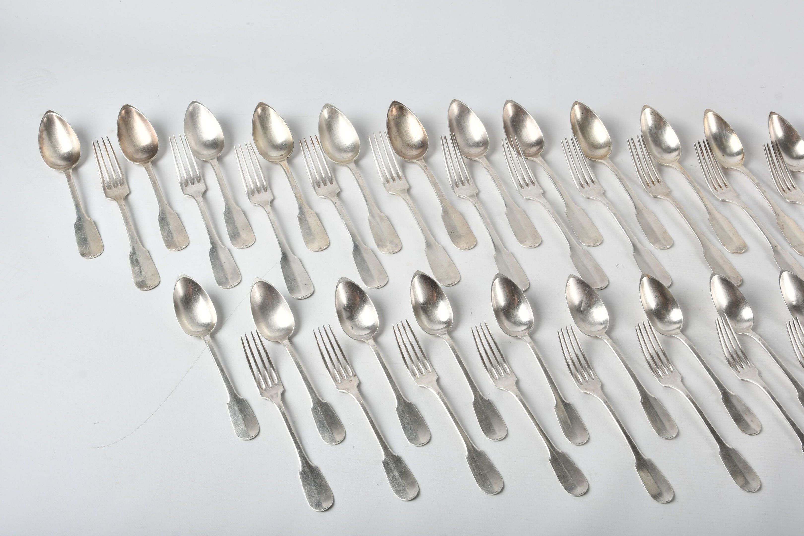 MENAGERE en argent, modèle uniplat, monogrammée PB, comprenant : vingt grands couverts et quatorze couverts à entremets. XIXème siècle. Poids : 4510 g