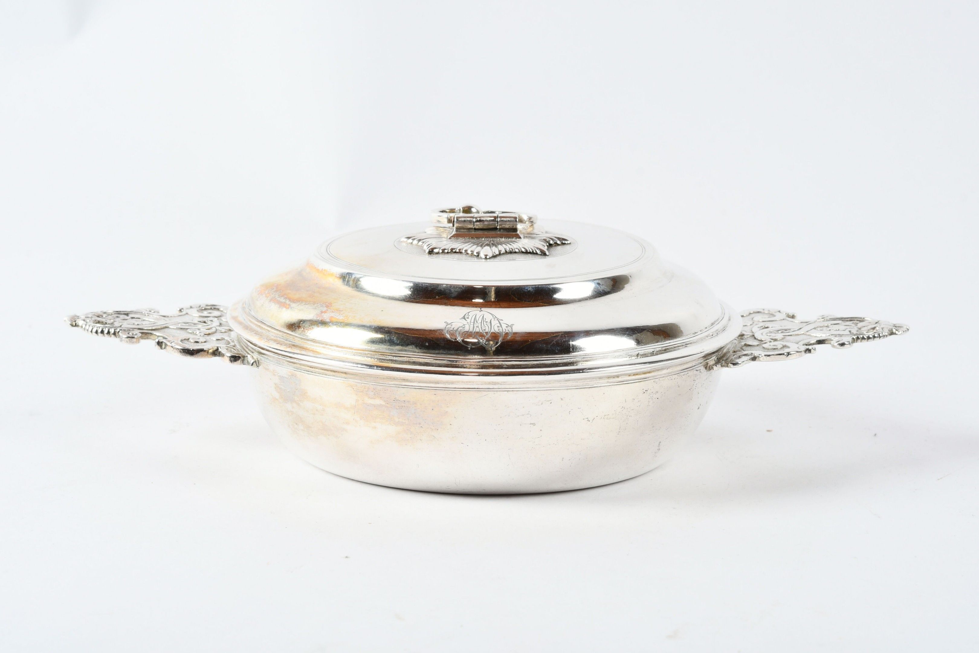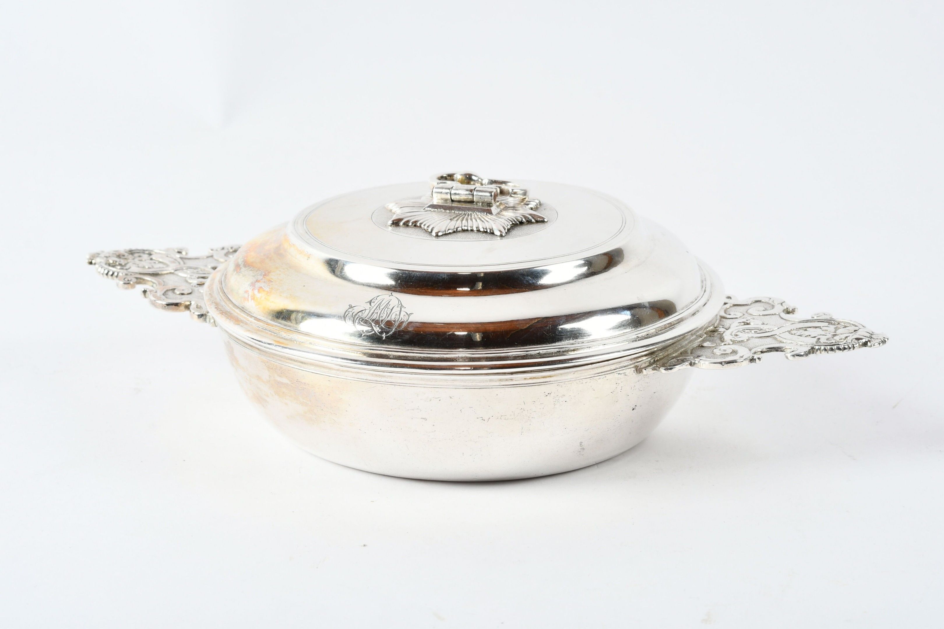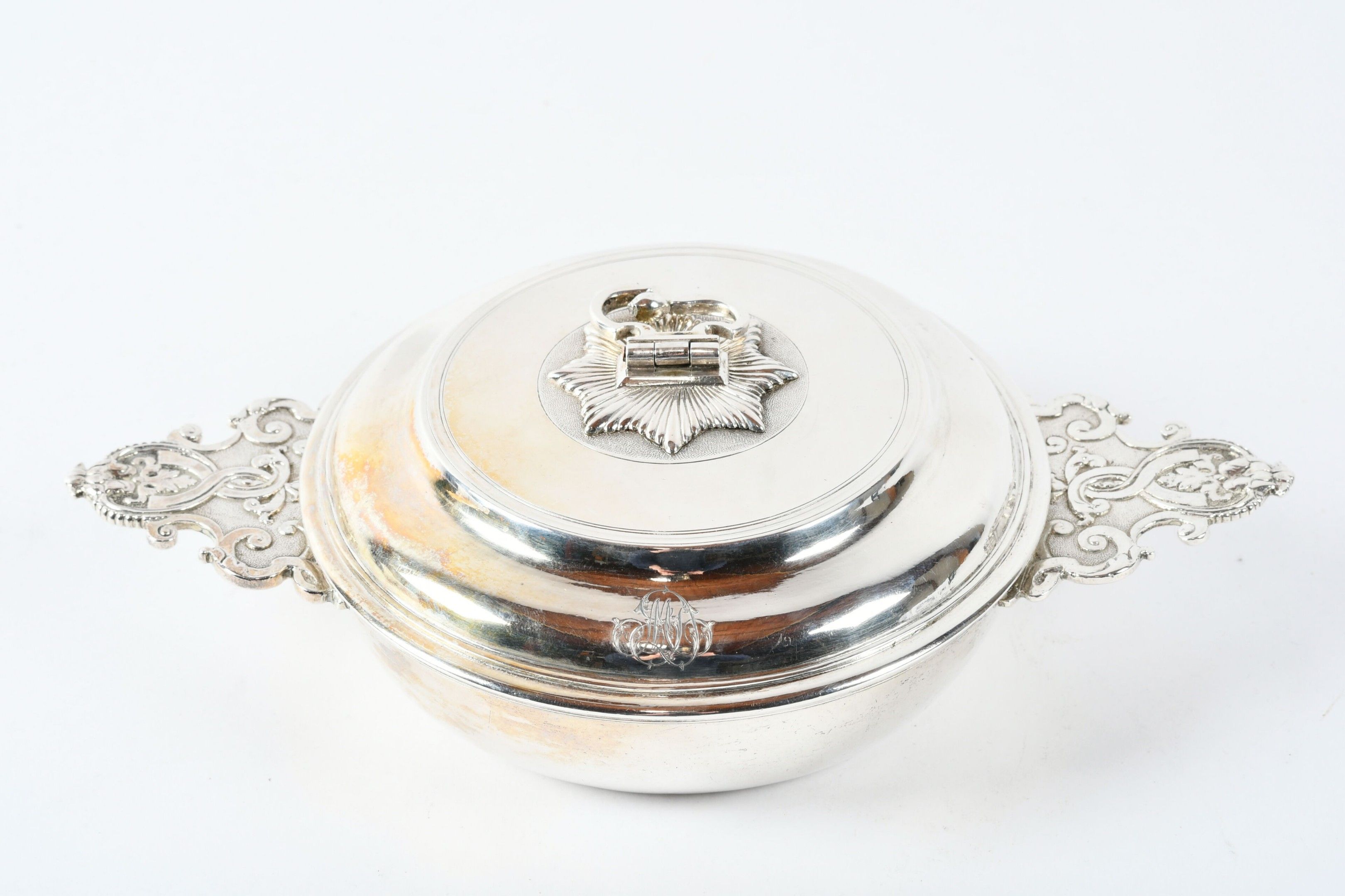 Premium ECUELLE couverte en argent à anses à décor de volutes.