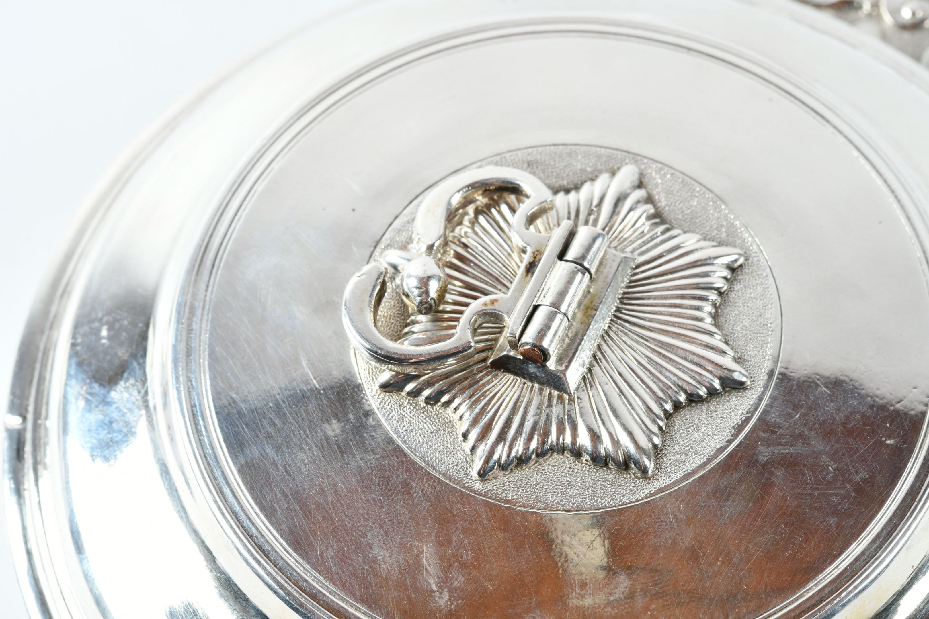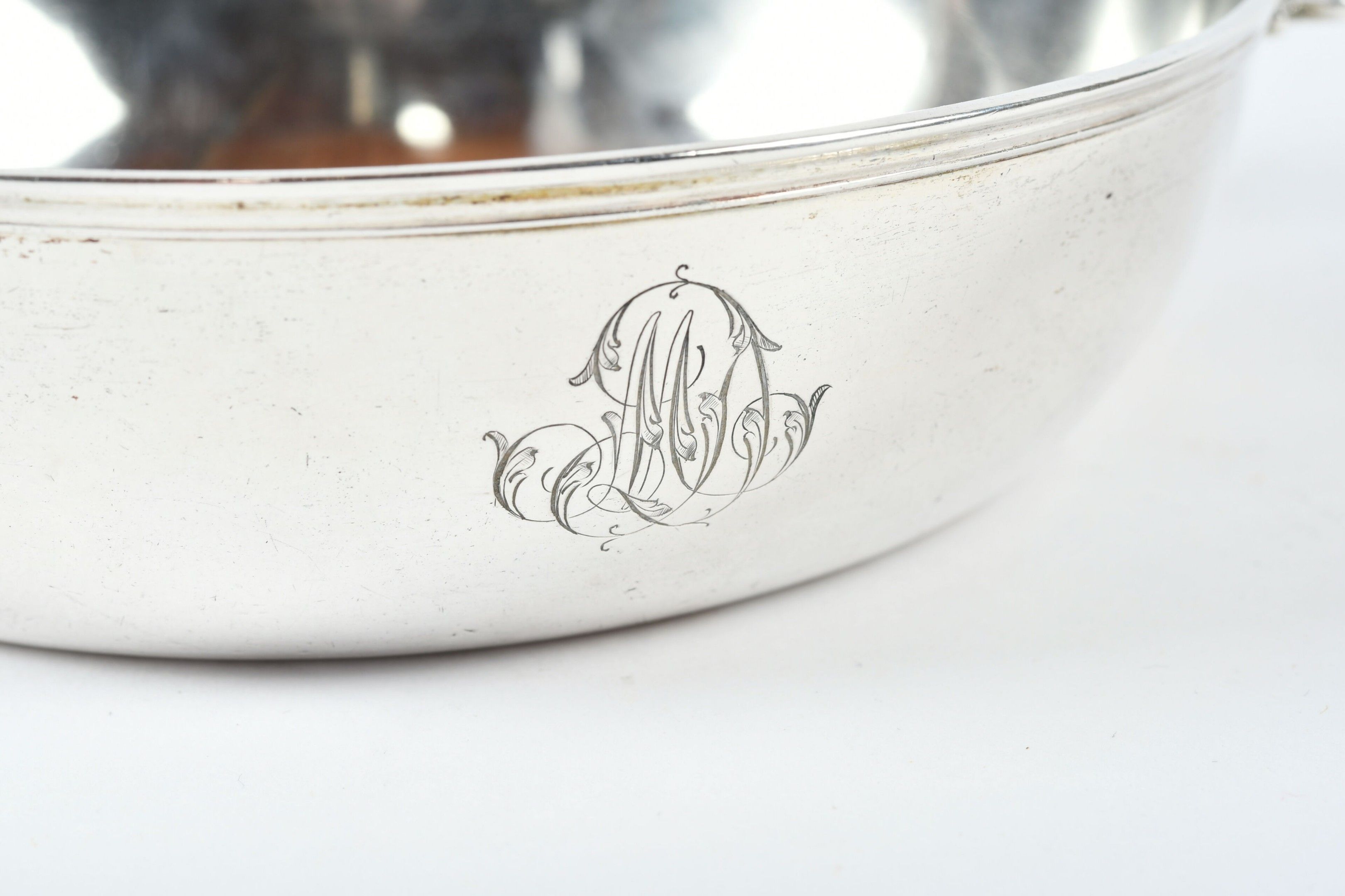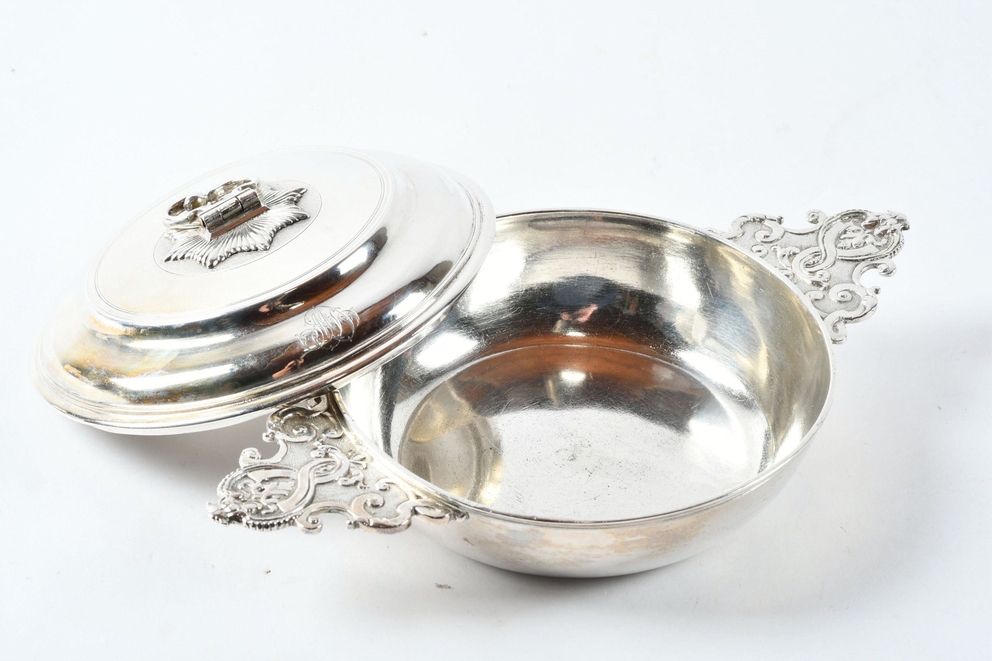Premium ECUELLE couverte en argent à anses à décor de volutes.