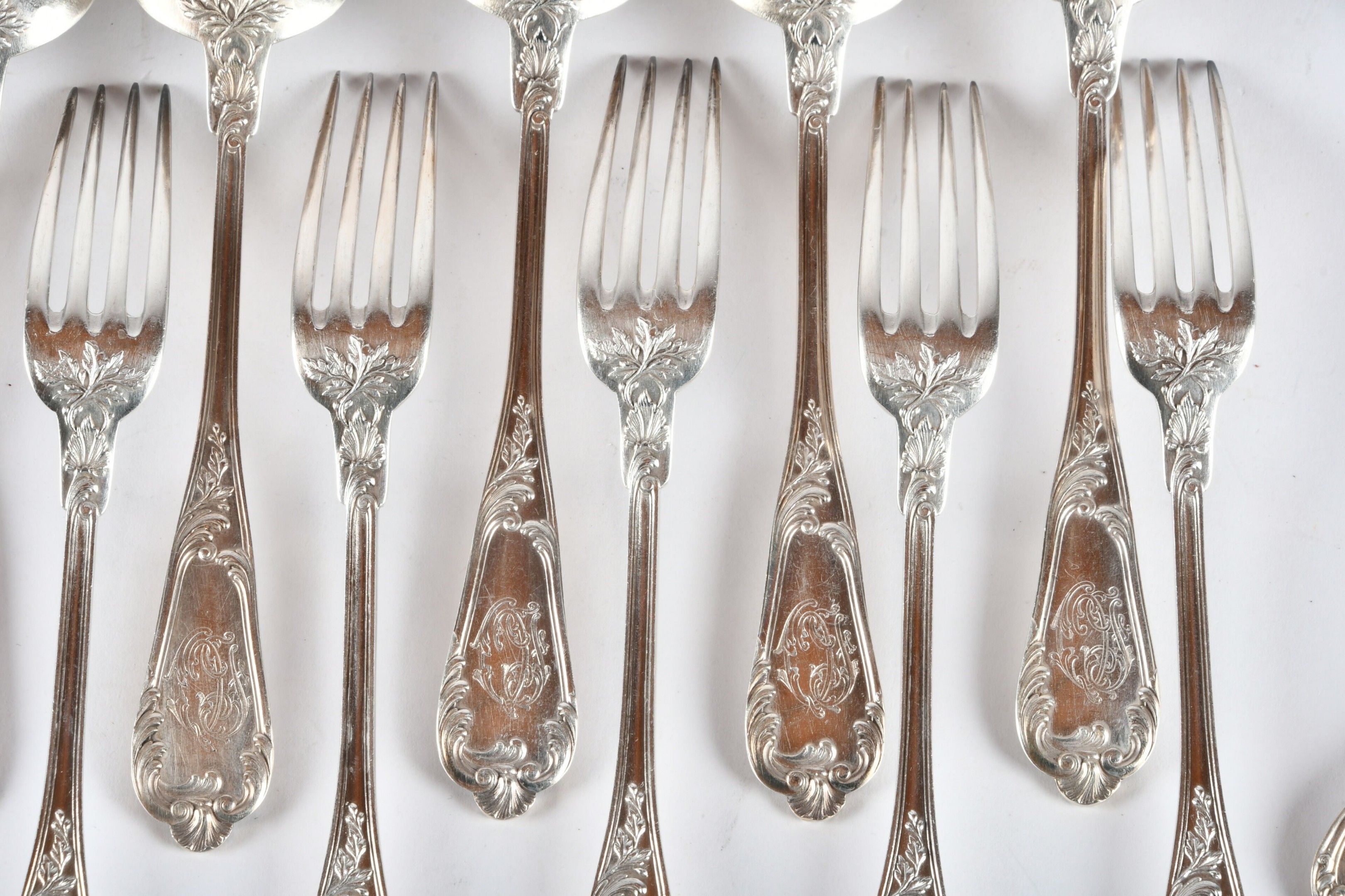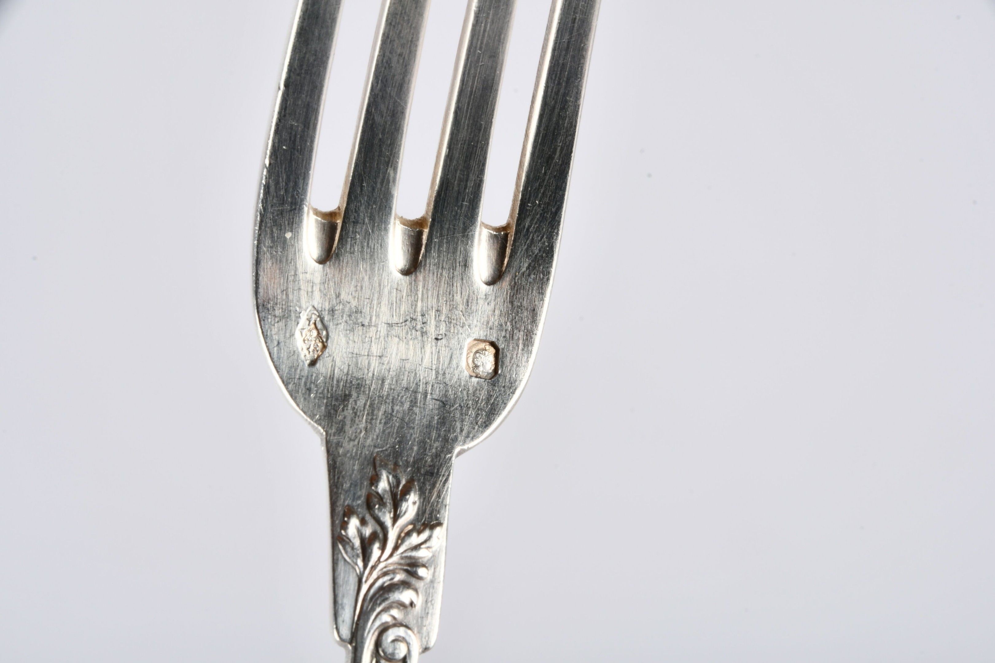 COUVERTS à ENTREMETS (suite de six) en argent, décor feuilla…