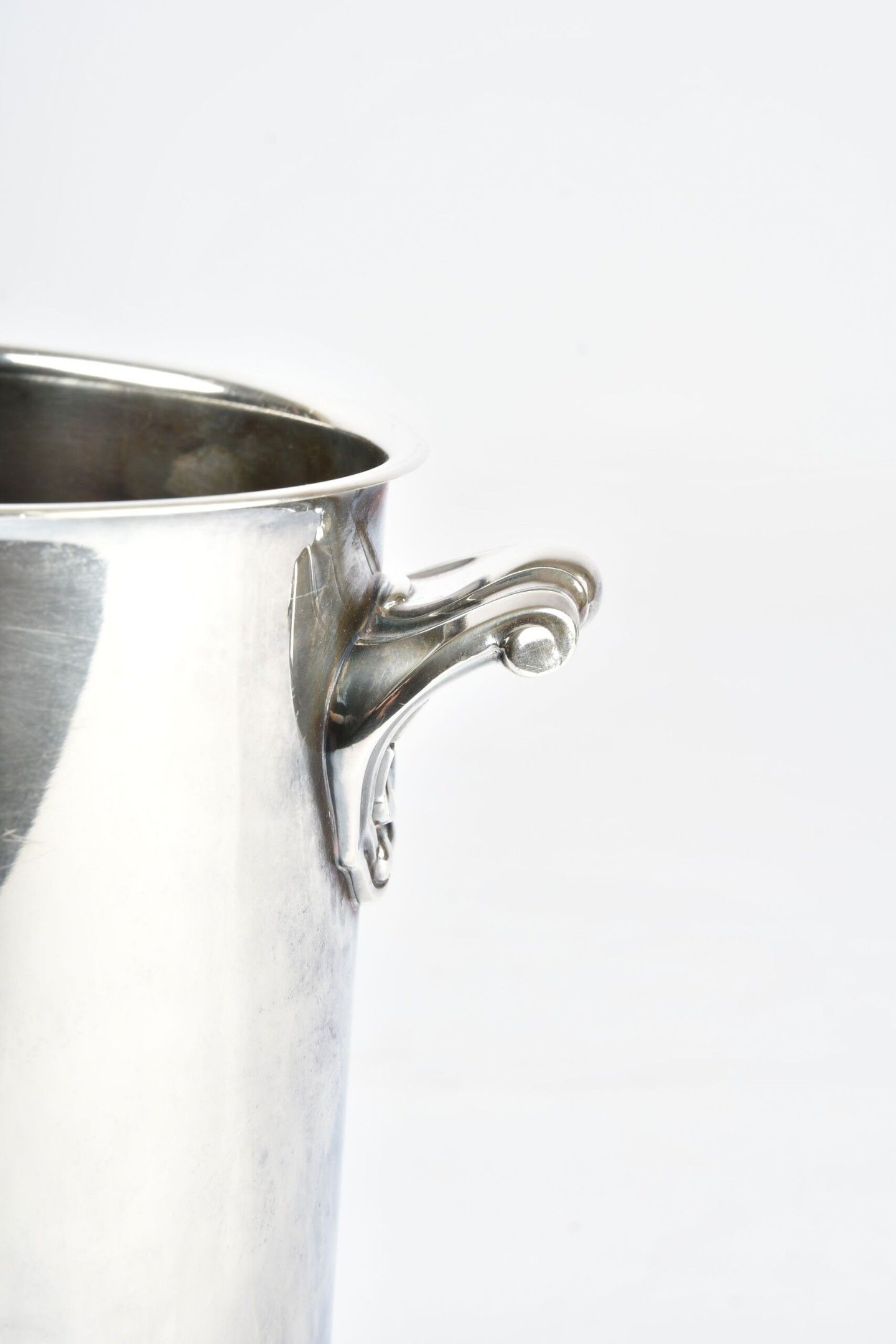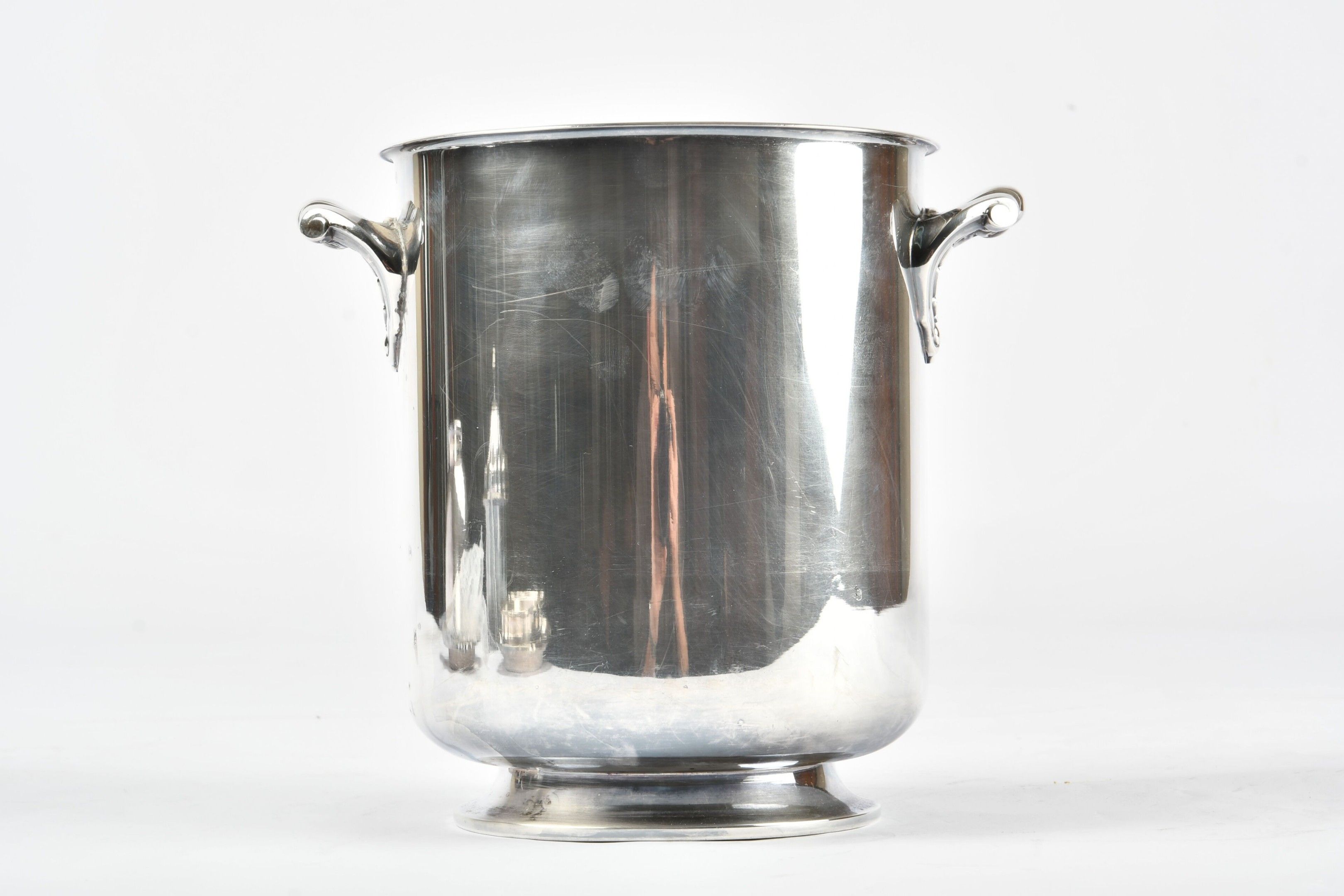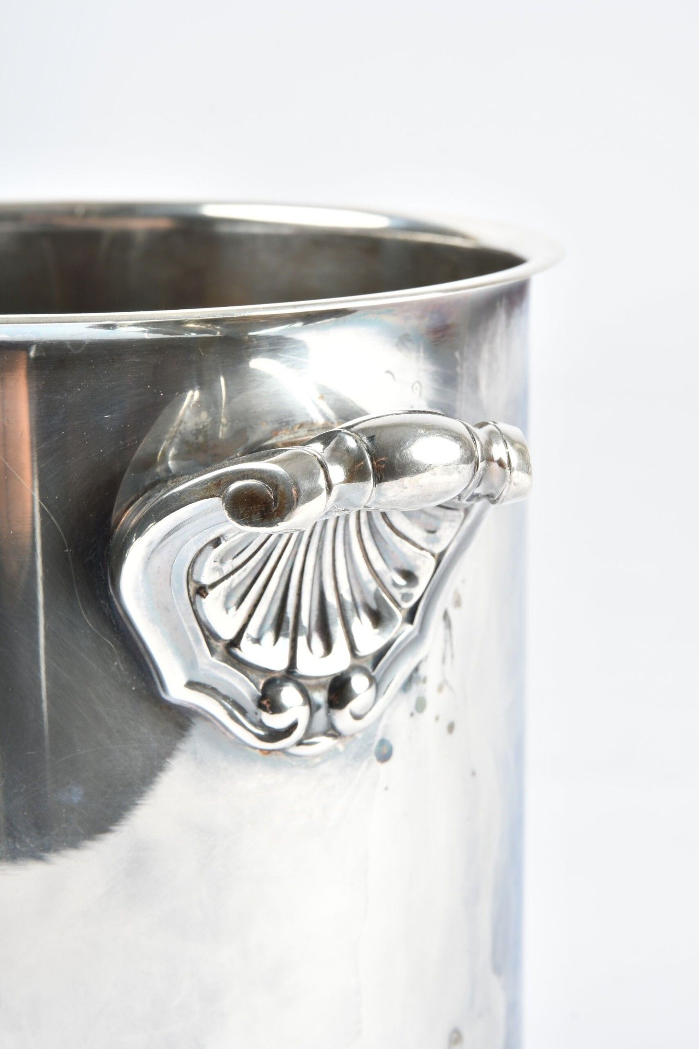 GALLIA (Production Christofle). Seau à bouteille en métal argenté à anses coquille. H. 22,5 cm