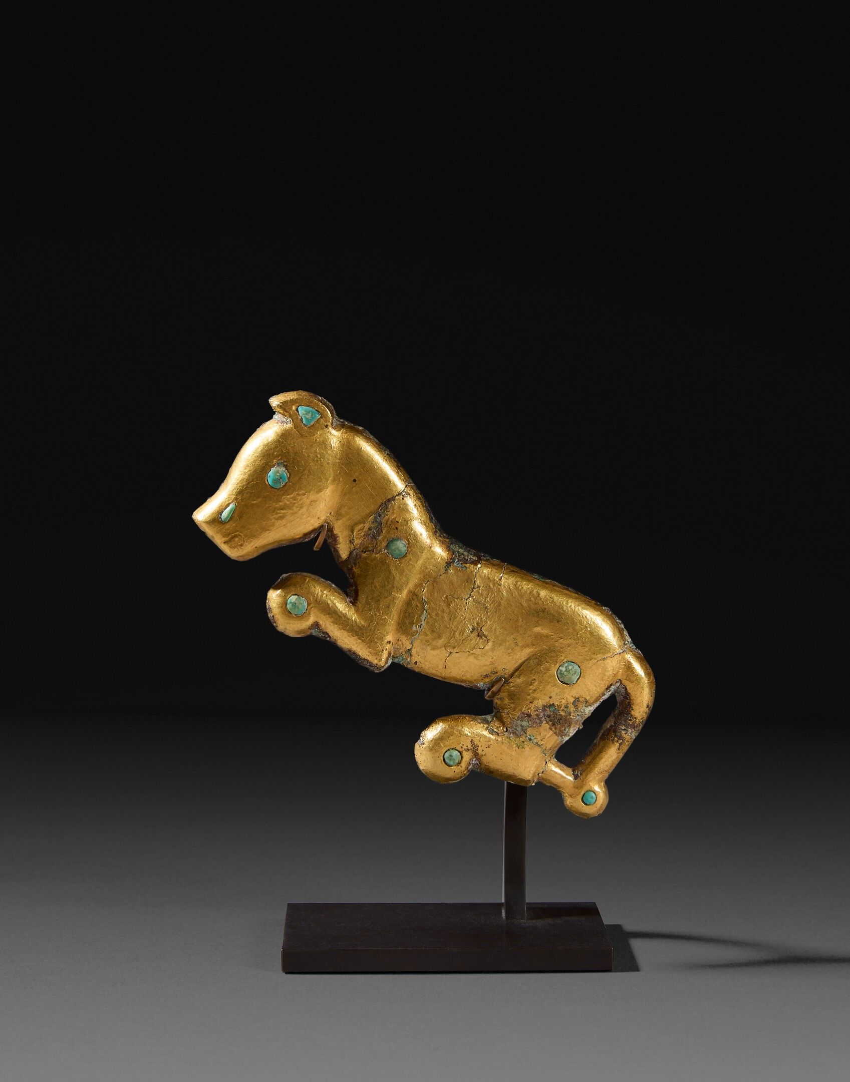 Ornement doré représentant un félin en relief. Chine de Nord…
