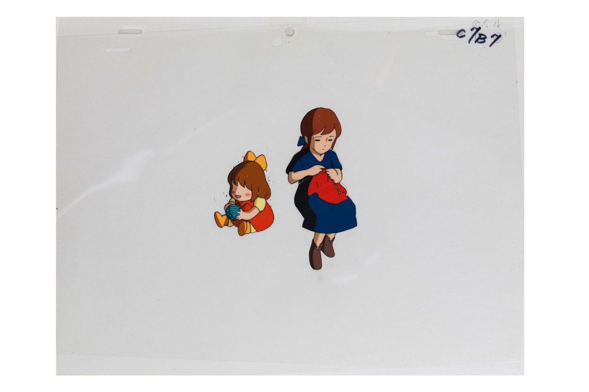 Ensemble de trois cellulo exécutés à l’encre et à la gouache, chacun accompagné d’un dôga à la mine de plomb et aux crayons de couleur