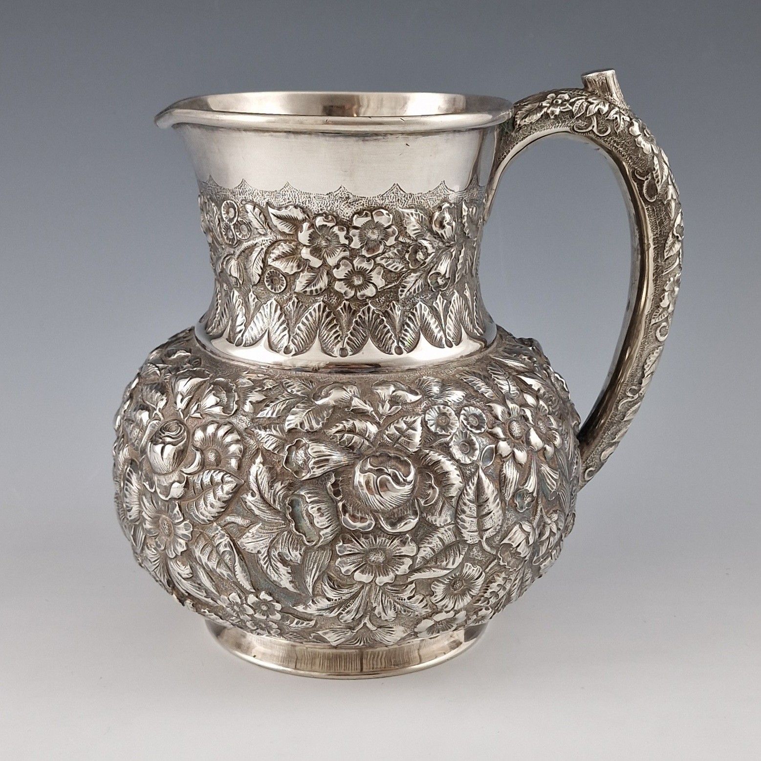 BROC en argent Sterling par MERMOD JACCARD - Etats Unis Circa 1880 à riche décor repoussé de fleurs