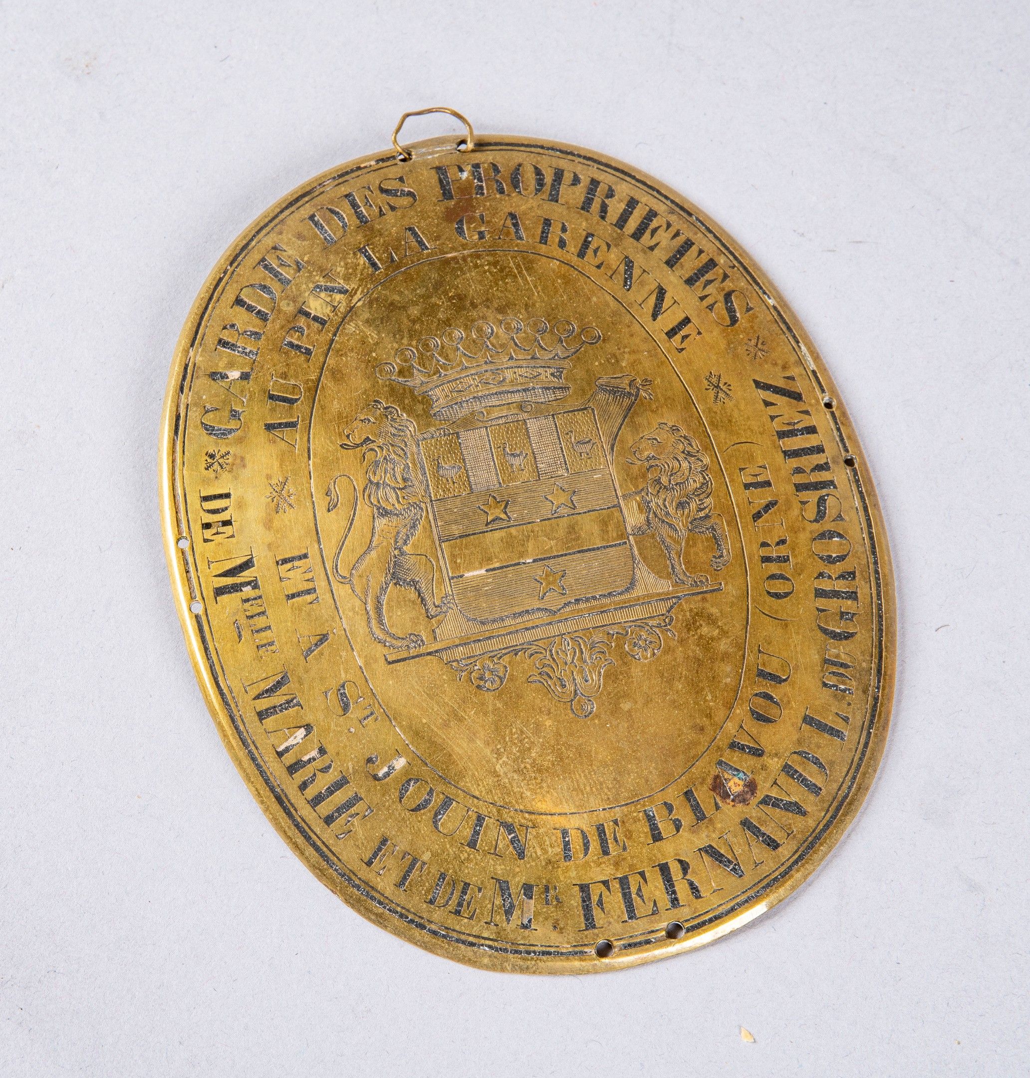 Plaque de garde chasse pour la propriété du Pin la Garenne Bronze XIXème siècle