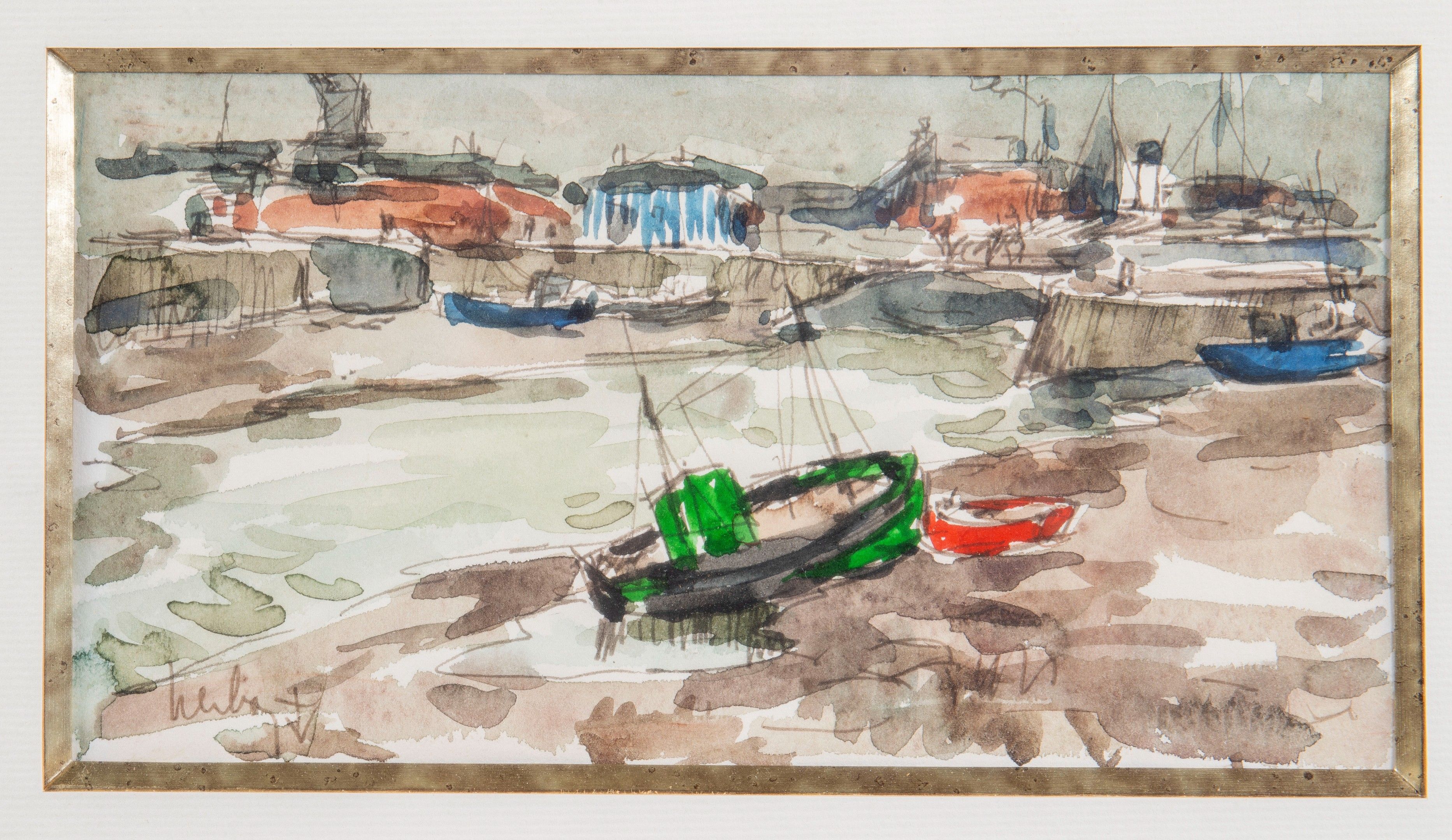 Fernand Herbo - Bateau à voile à l’entrée du Port - Aquarell…