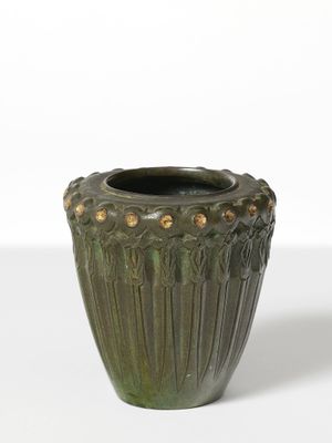 Jean DUNAND Petit vase - circa 1912 Bronze patiné vert antiq…