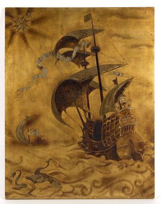 TRAVAIL FRANCAIS Caravelles - circa 1930-1940 Panneau à déco…
