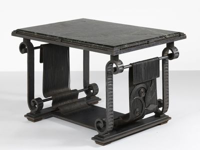 Gilbert POILLERAT Guéridon bas - modèle créé circa 1945 Stru…