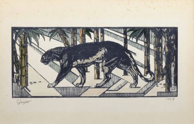 Gaston SUISSE Panthère marchant parmi les bambous - 1927 Boi…