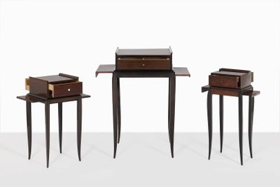 Jean PASCAUD Ensemble de trois petites tables d'appoint - ci…