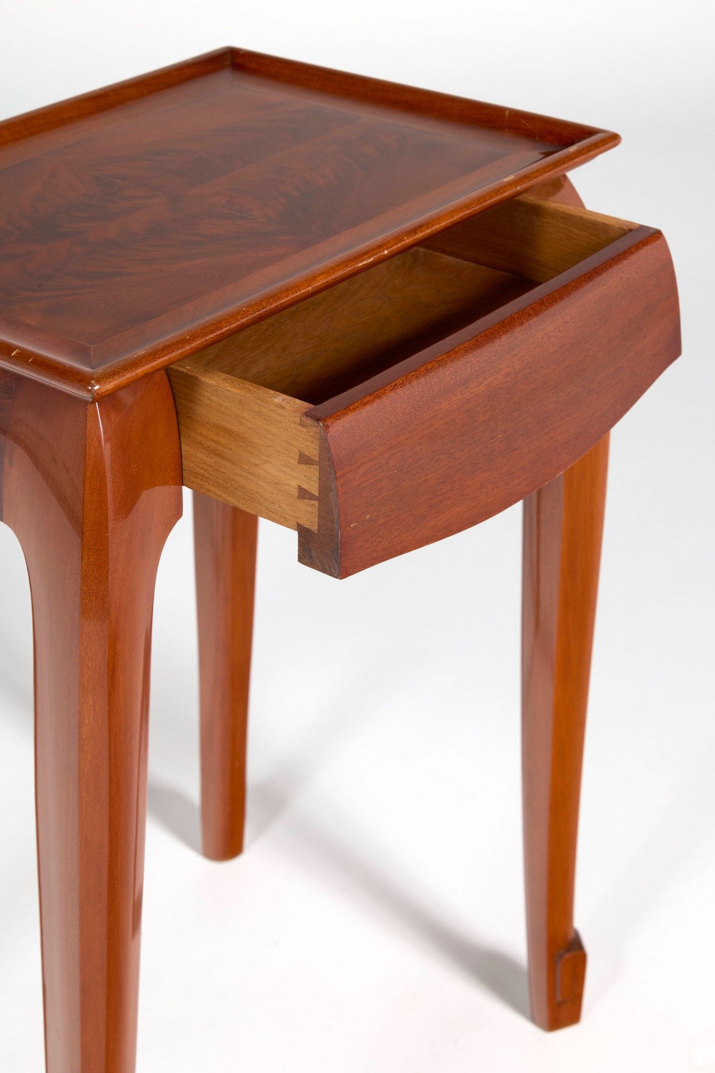 En acajou et placage d’acajou, ouvrant par un tiroir en ceinture Plateau en cuvette à fond en placage d’acajou flammé 65 × 46 × 32,5 cm