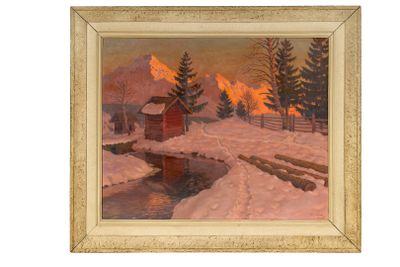 MAXIMILIEN LUCE (1858-1941) Moulineux, paysage de neige Huil…