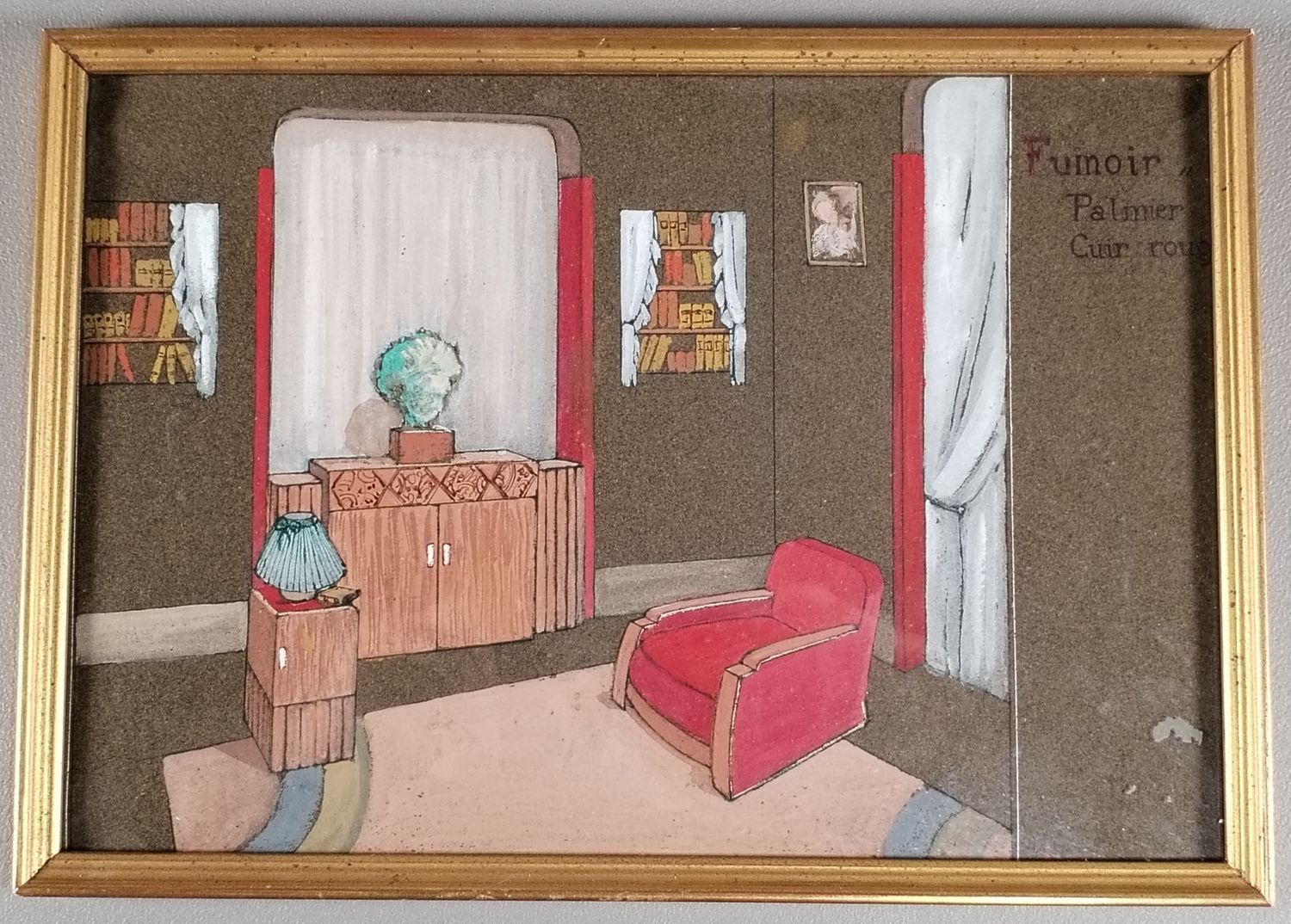 Anonyme XXe Projet d’architecte pour un « Fumoir /Palmier/cuir rouge » Dim : 21 x 30 cm Ni S ni D