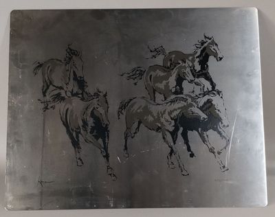 Non identifié. "Six chevaux au galop" Sérigraphie sur métal …
