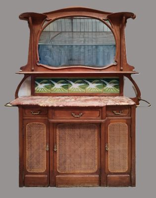 Buffet à deux corps en noyer , l'entablement en marbre rouge…