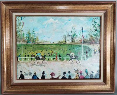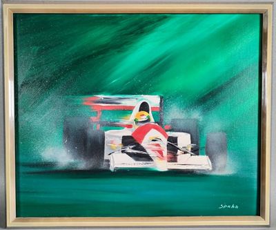 Victor SPAHN (1949 - ). Huile sur toile "Voiture de formule …