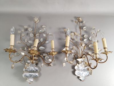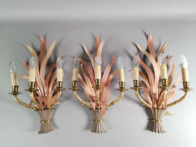 Suite de trois appliques à 3 bras de lumières, décor de bran…