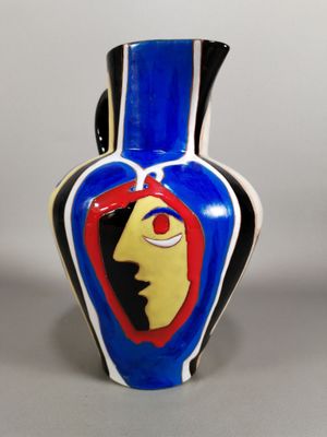 Jean LURCAT (1892-1966). Pichet à anse en faïence émaillé à …