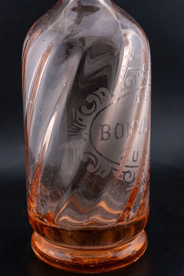 SIPHON MAISON BONVALLET (Auriol) - Siphon 1/2 litres rose torsadé.
